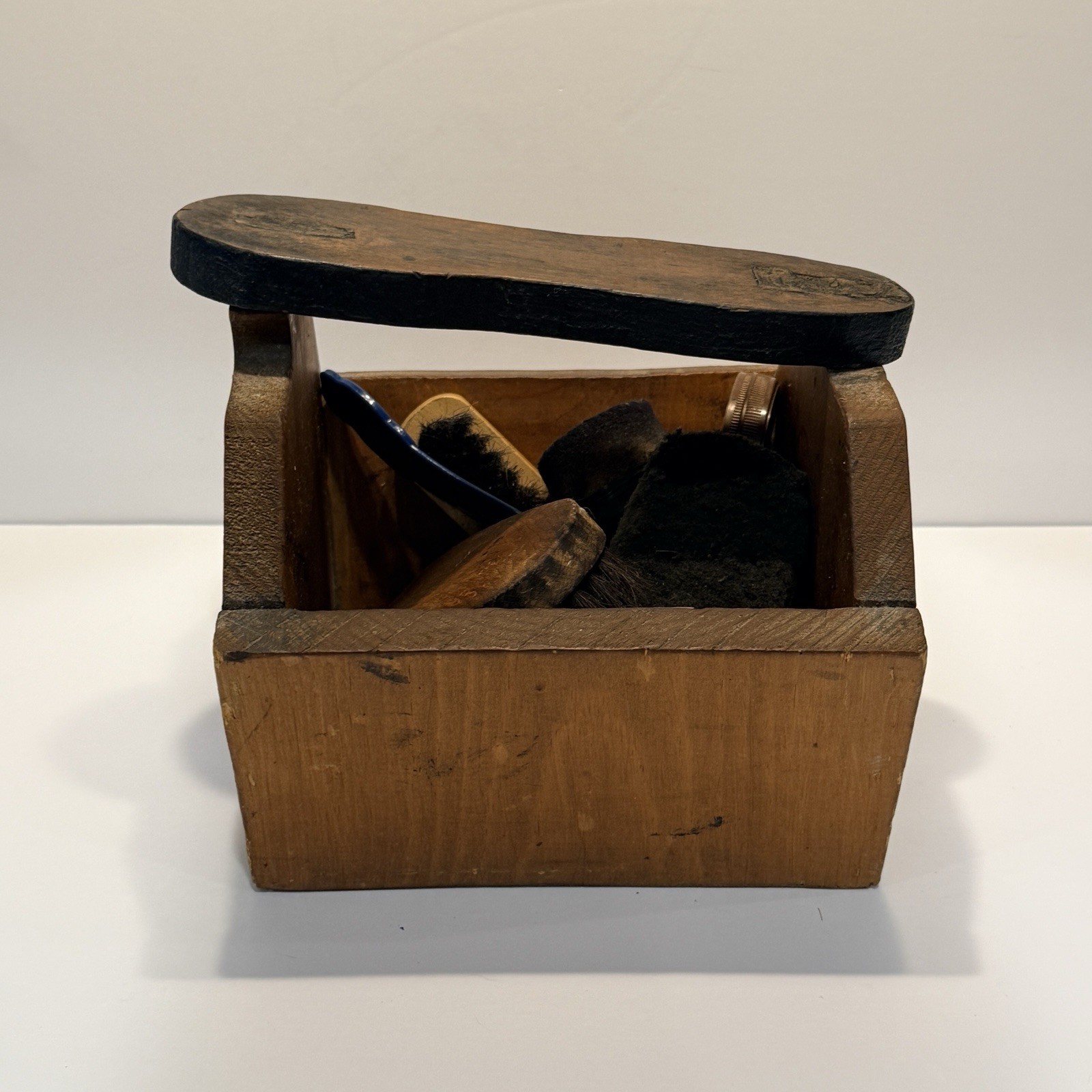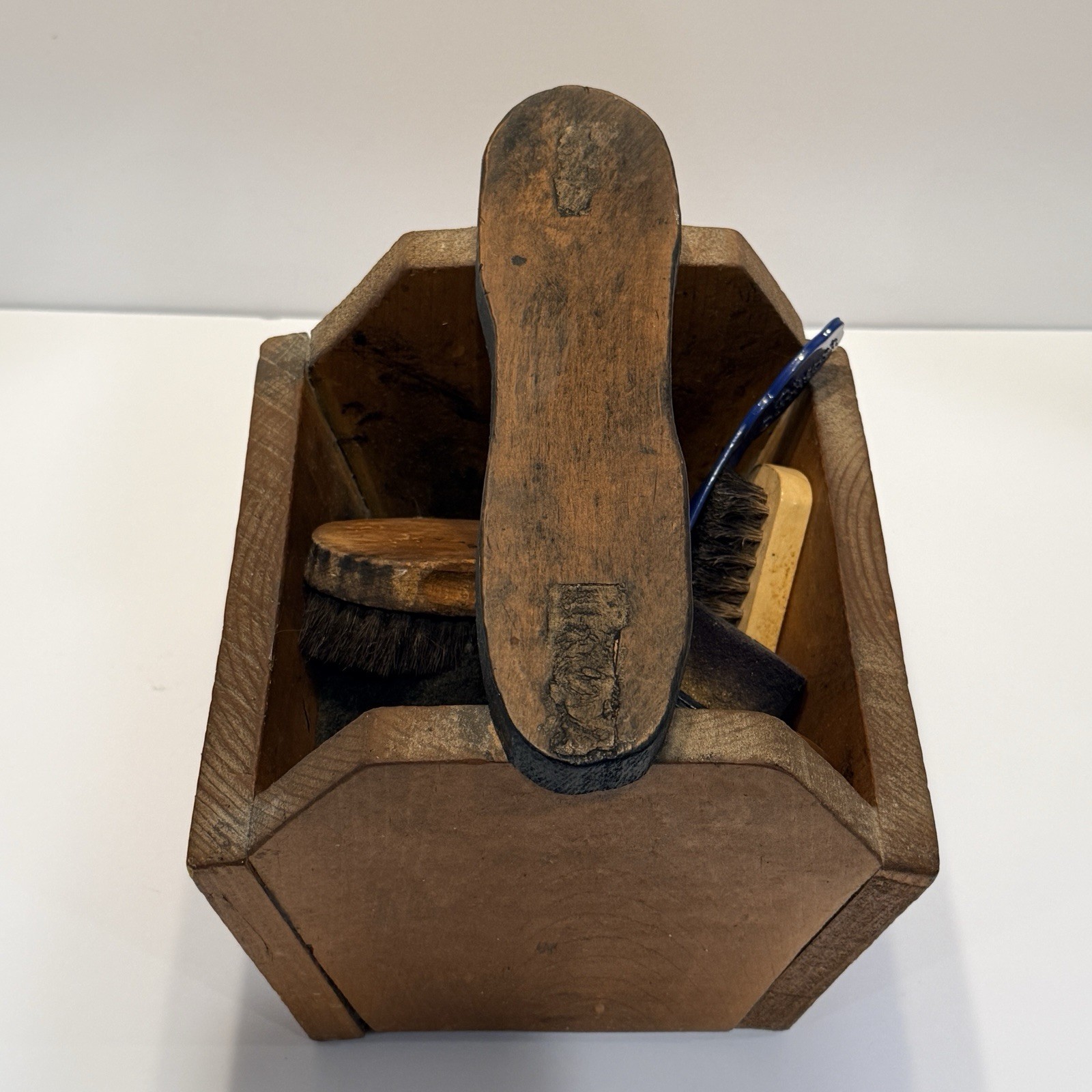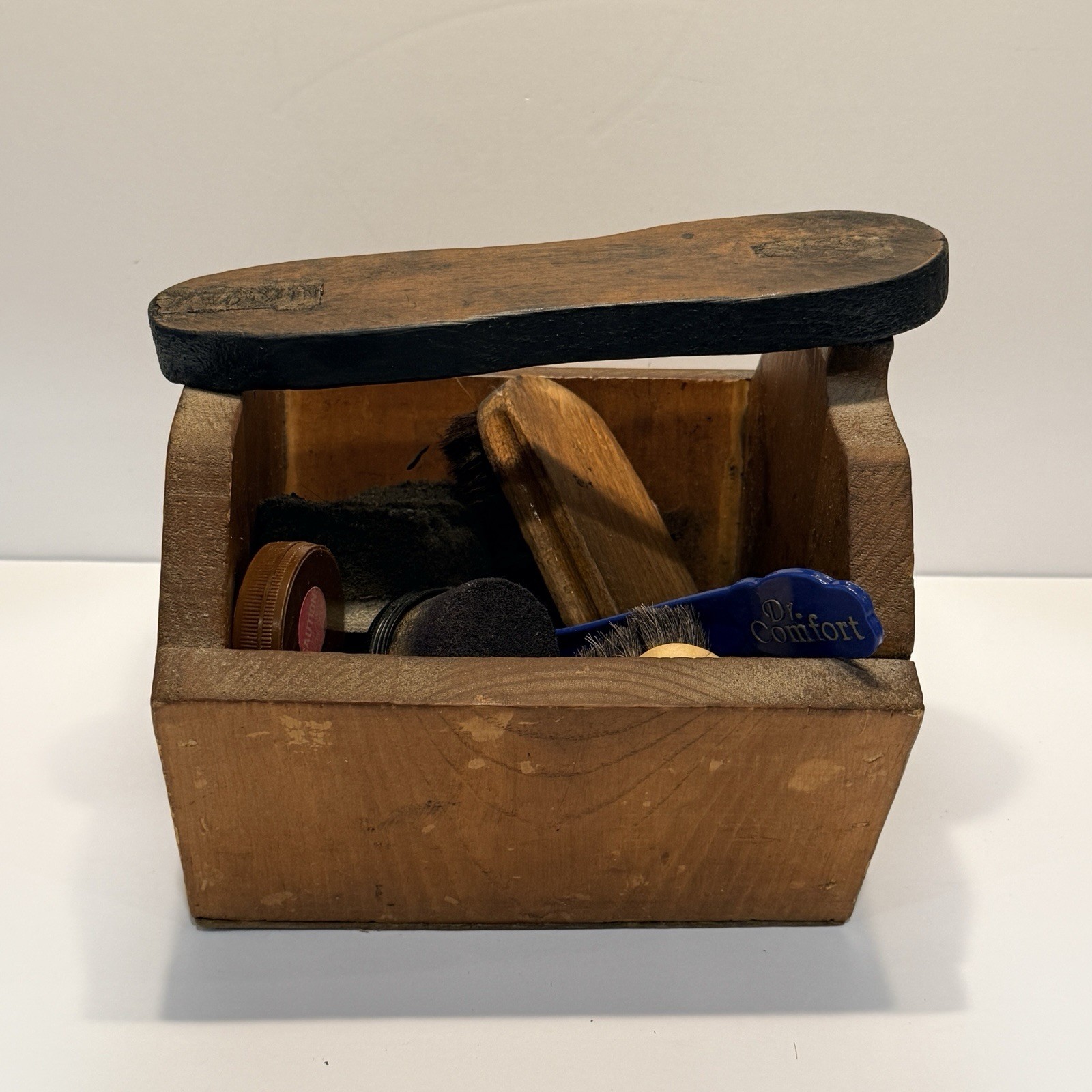 Vintage Handmade Shoe Shine Box Lot Brushes Dr Comfort Shoehorn Boot Rest Valet