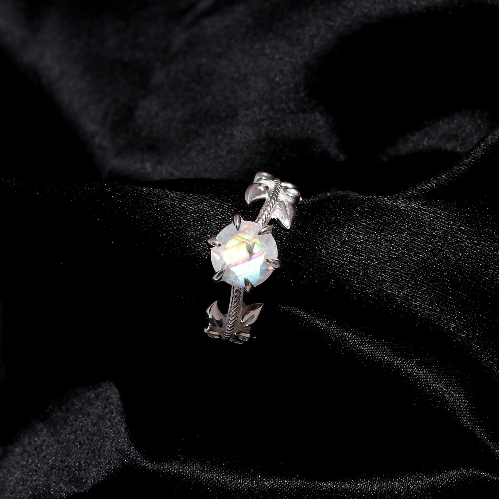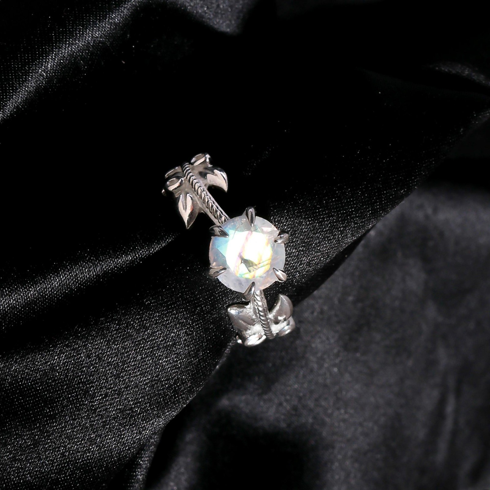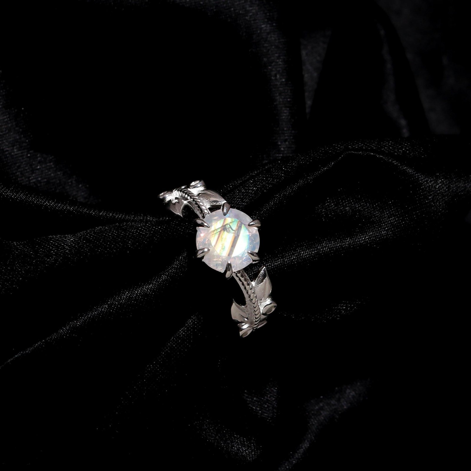 как выглядит Rainbow Moonstone Round Leaf Ring 925 Sterling Silver Minimalist Jewelry For Her фото