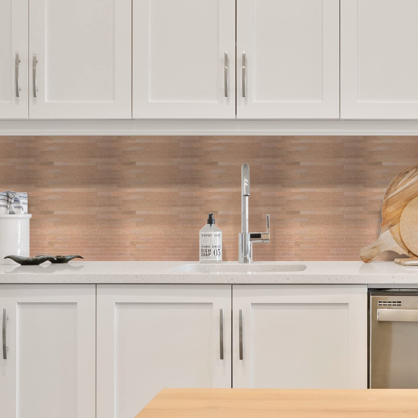 Copper Backsplash Peel and Stick Tiles, Self Adhesive Linear Stick on Backspl...