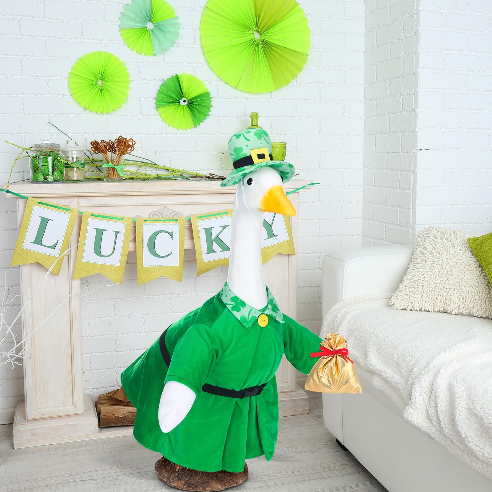 St. Patrick's Day Goose Outfit Porch Goose Clothes for 23 Lawn Outdoor Garde...