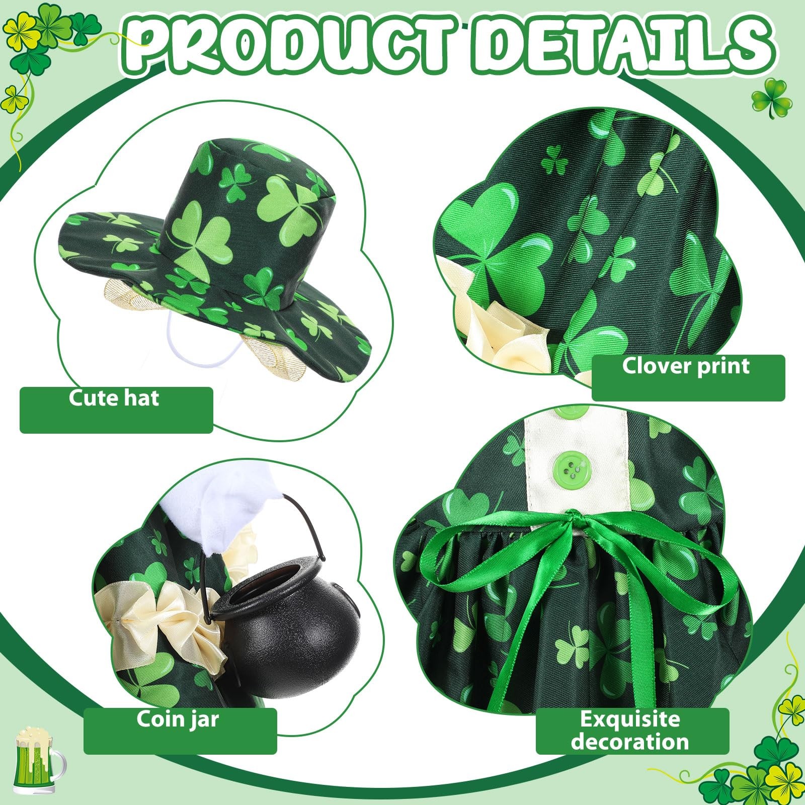 St Patrick's Day Shamrock Goose Outfit Lawn Porch Goose Clothes for 23 St Pa...