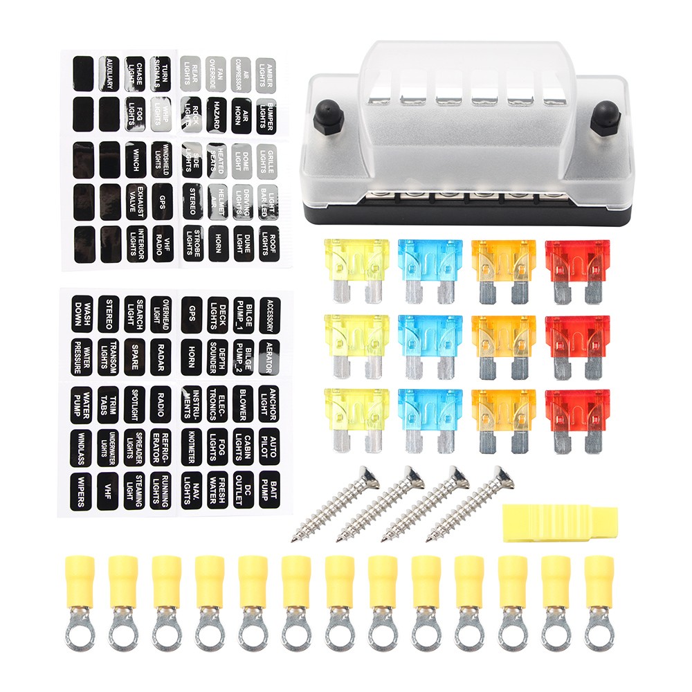 6-Way Blade Fuse Box Block Holders Car Boat Power Distribution Panel Kit 12V 32V