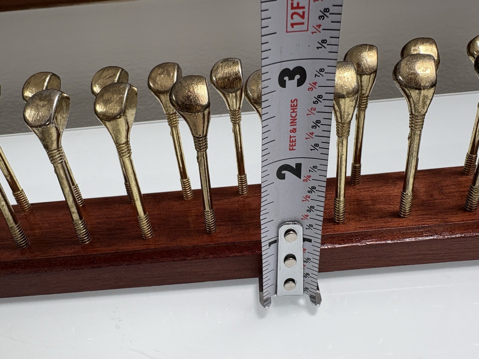 как выглядит Vintage Wood Golf Club Brass Finish Tie Rack Wall Mount Tie Holder фото