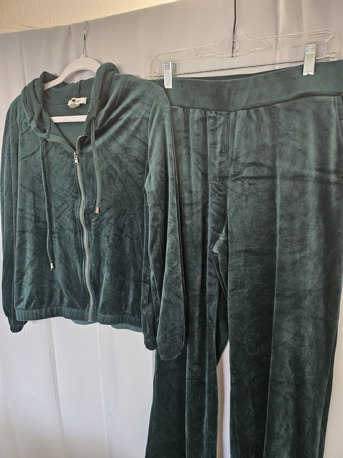 CABLE GAUGE Sport Green 2 pc Velour Activewear Set Lounge Hoodie Sz M