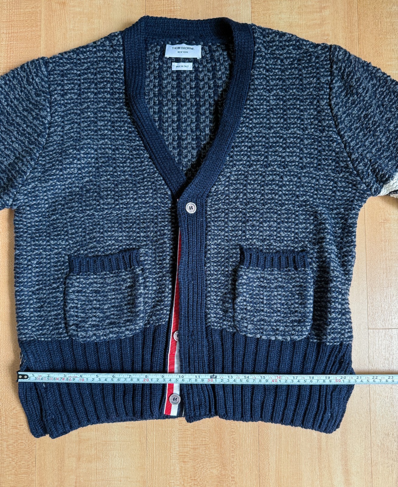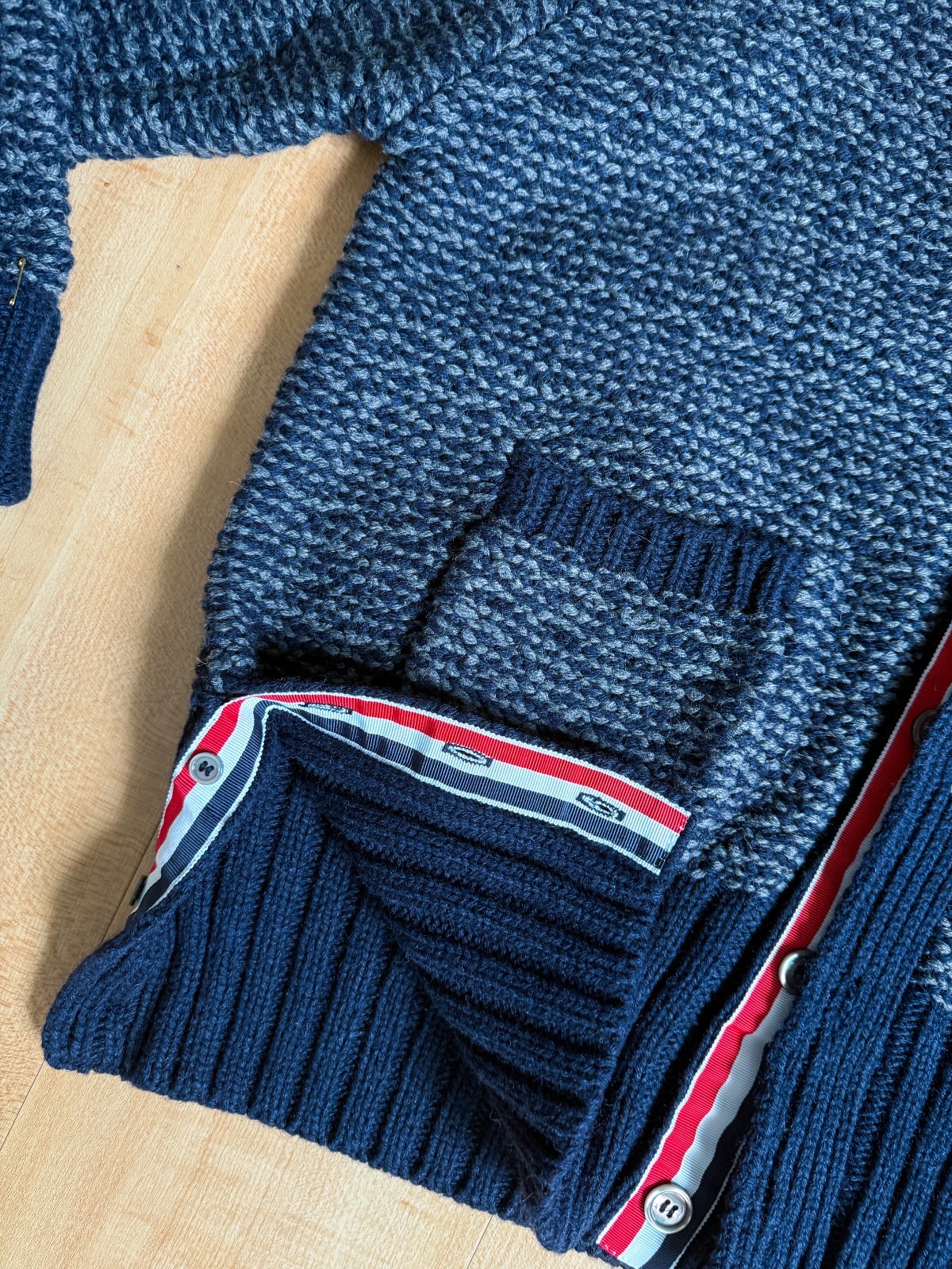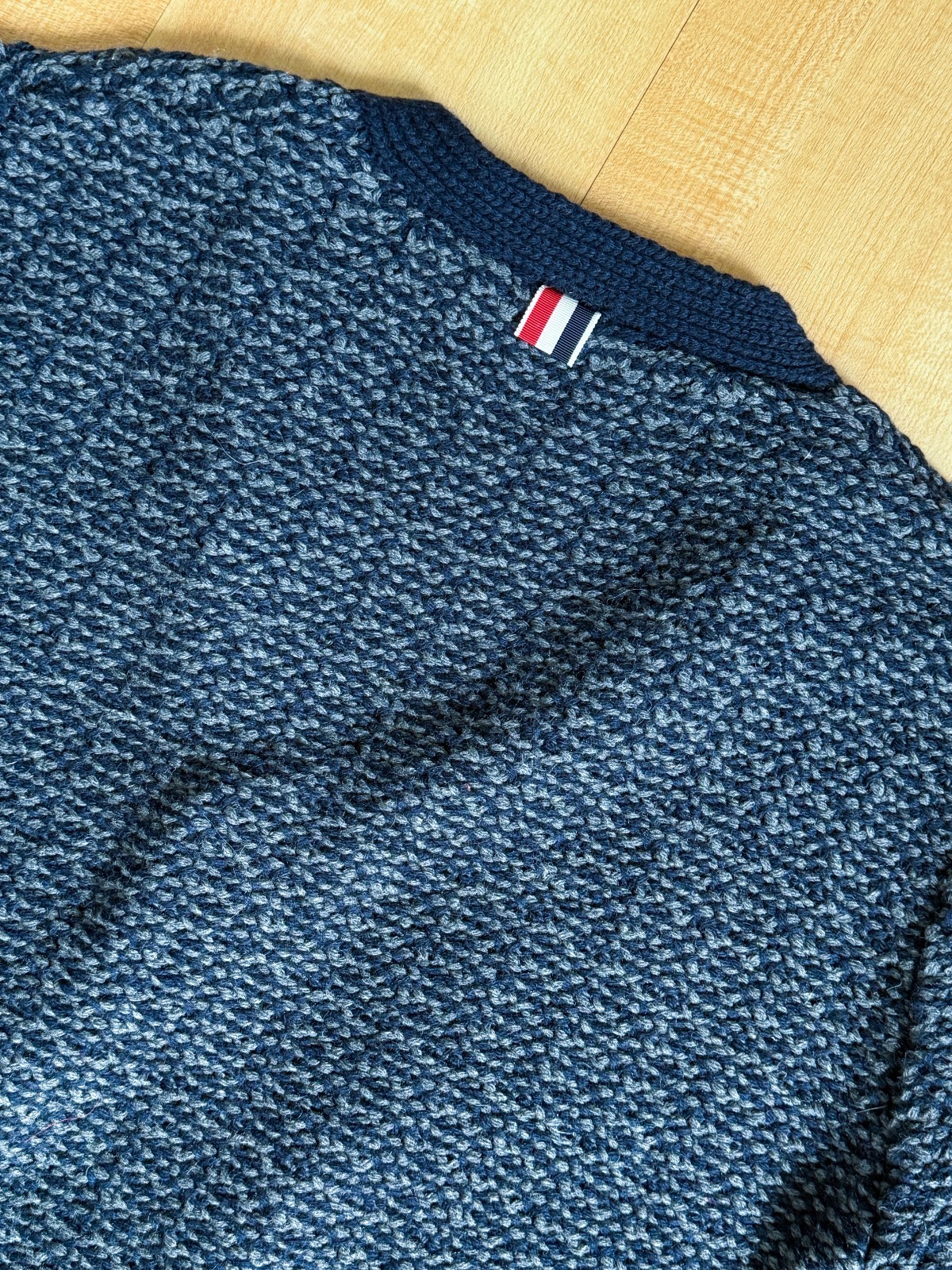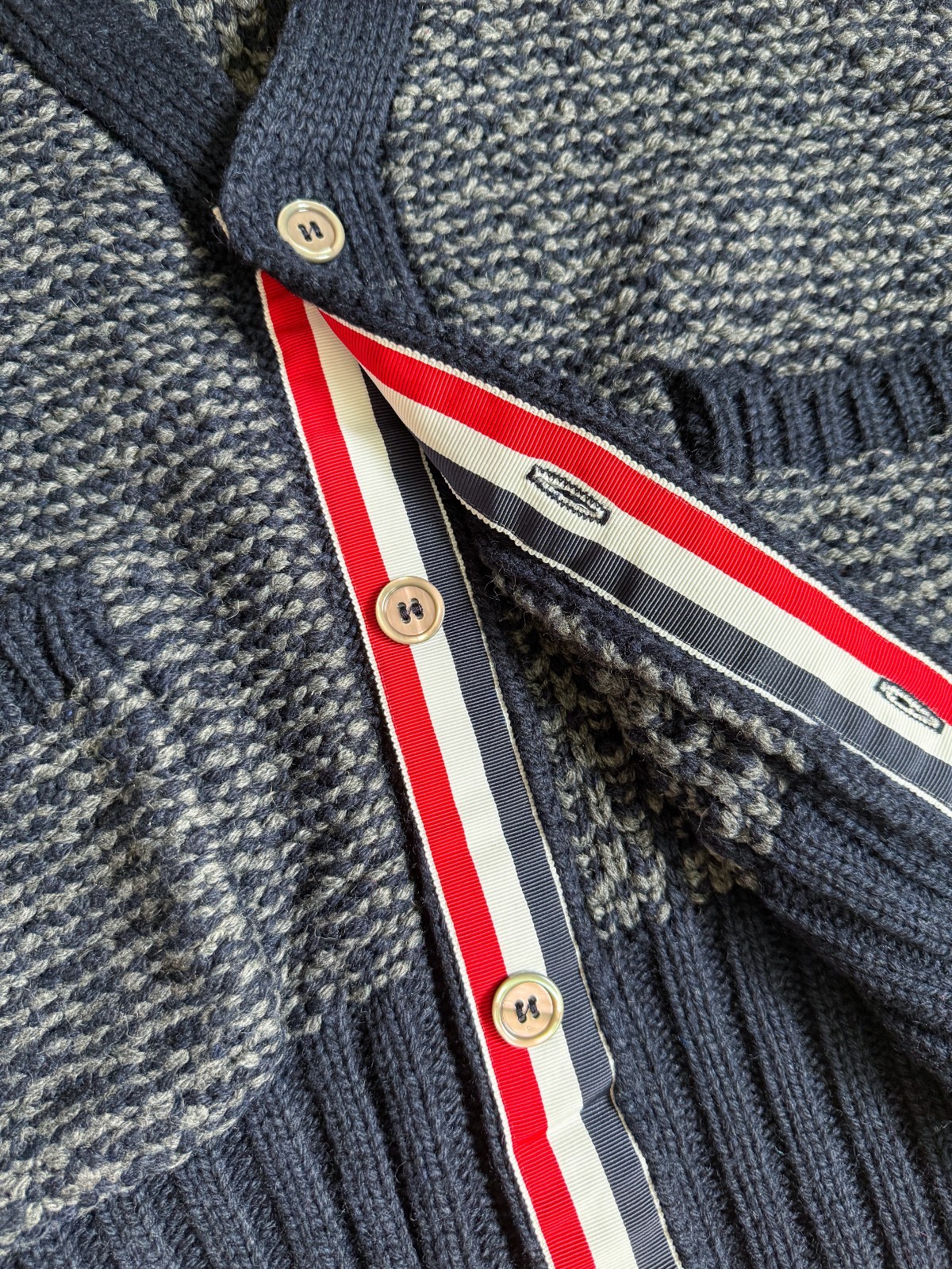 как выглядит Thom Browne 4-Bar Donegal V-Neck Cardigan фото