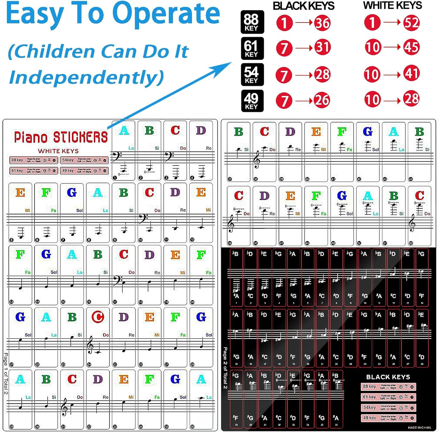 Piano Keyboard Stickers with Piano Chord Chart,For 88/61/54/49 Key,Note Letters