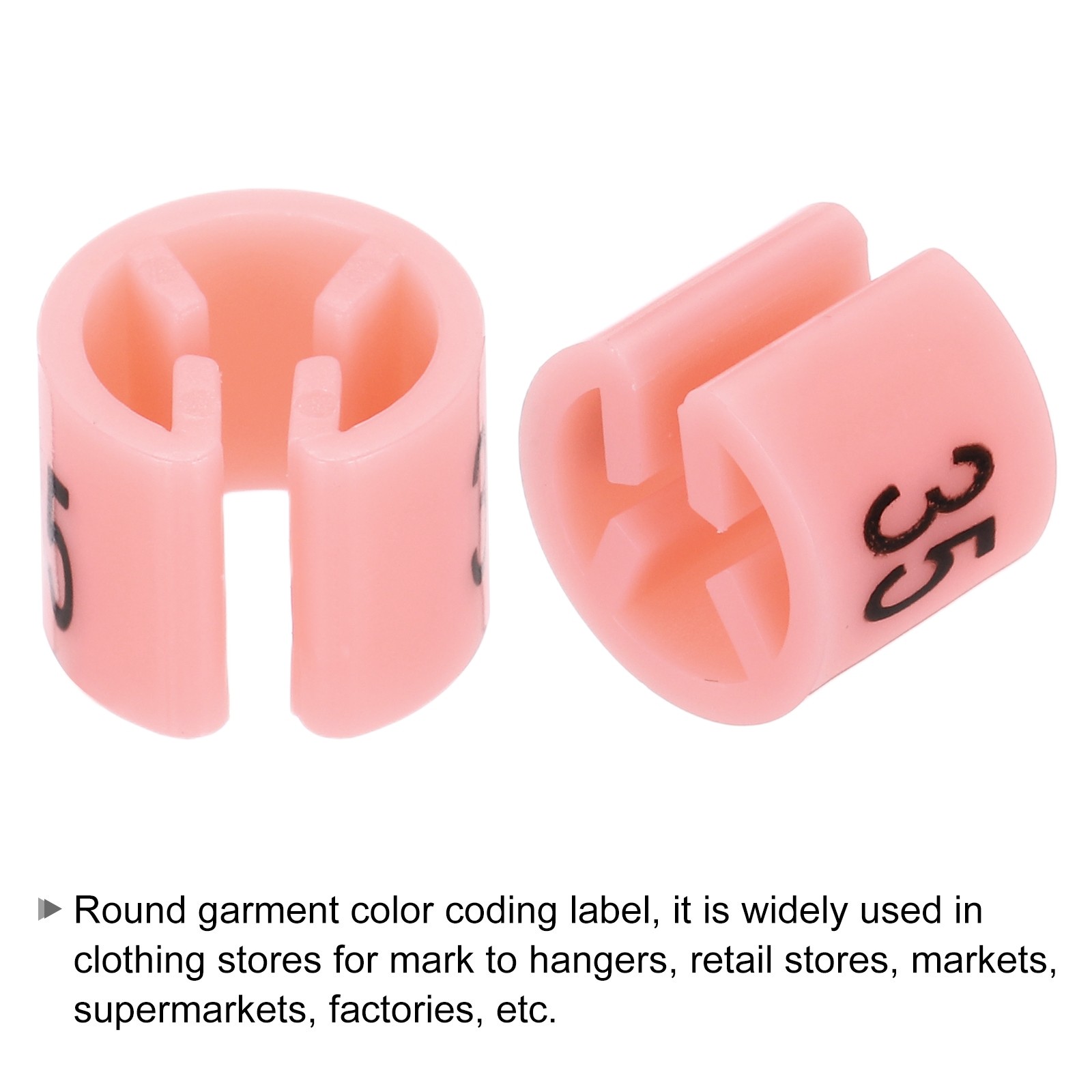 100 Pack Clothes Hanger Marker Number 35 Size Tag Fit 3mm Rod Pink