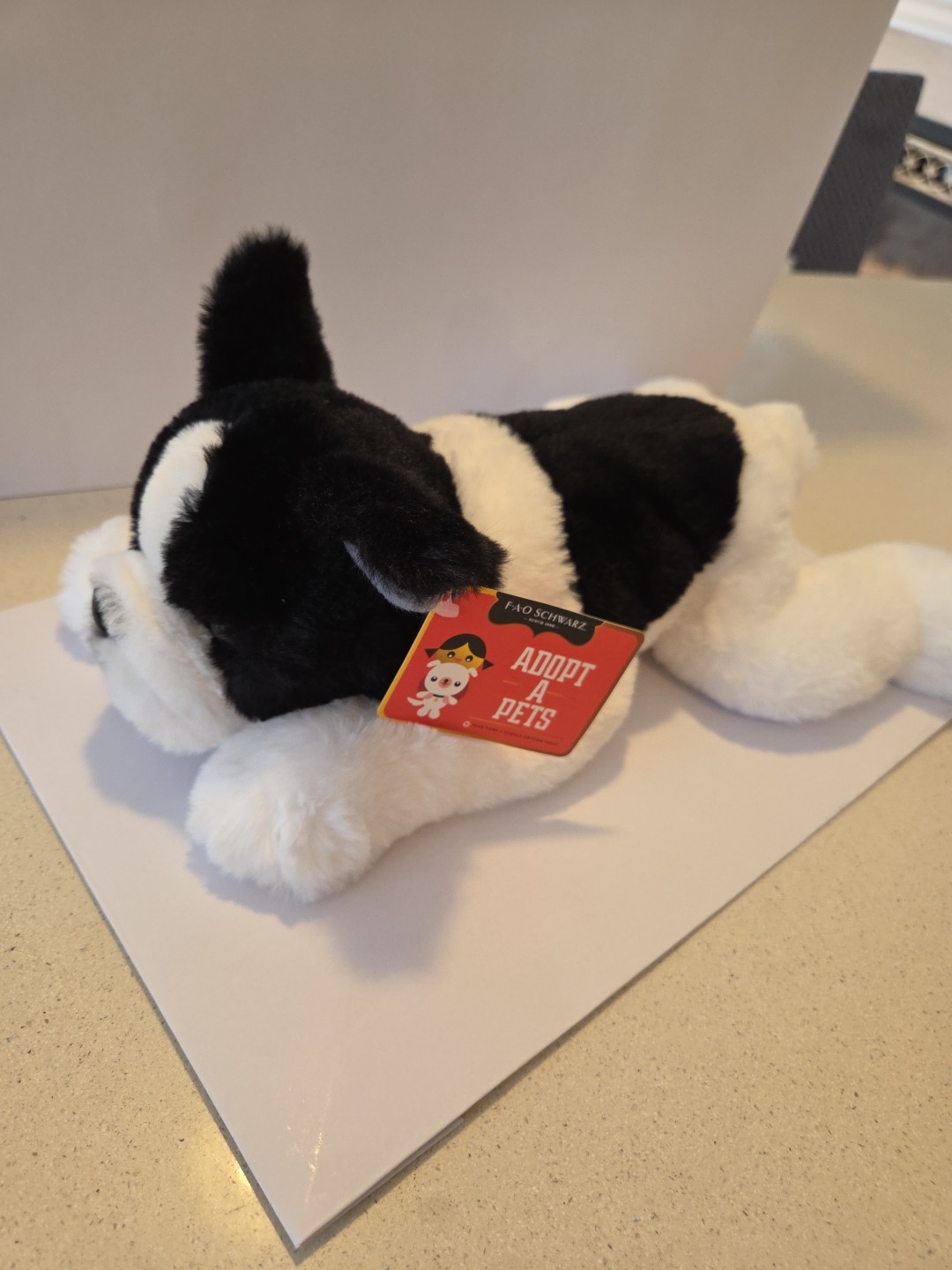 French Bulldog FAO Schwarz Stuffed Plush Puppy Dog 2023 12 Laying Black White