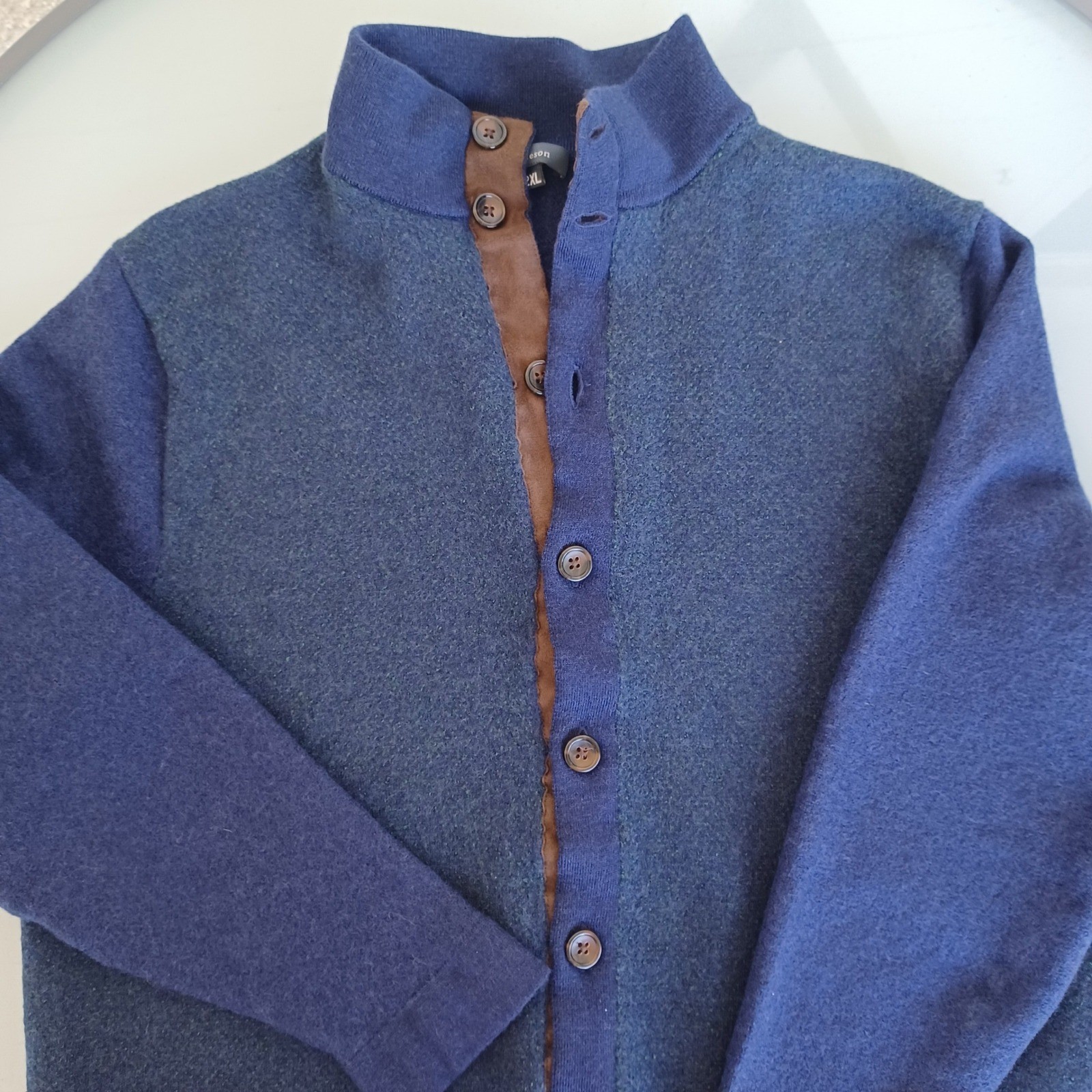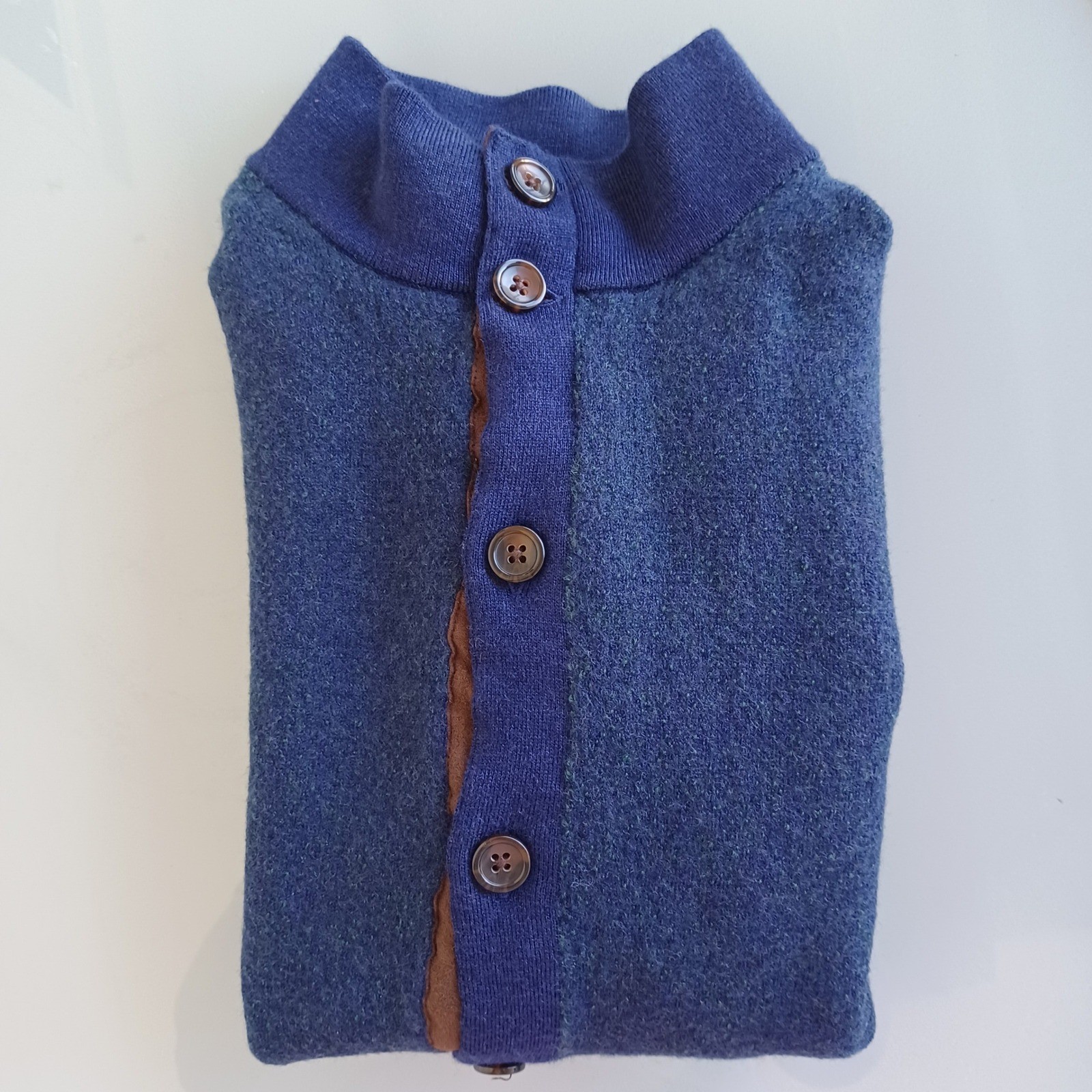 как выглядит Turtleson Men Blue 100 Extra Fine Merino Wool Mock Neck Button Cardigan Medium фото