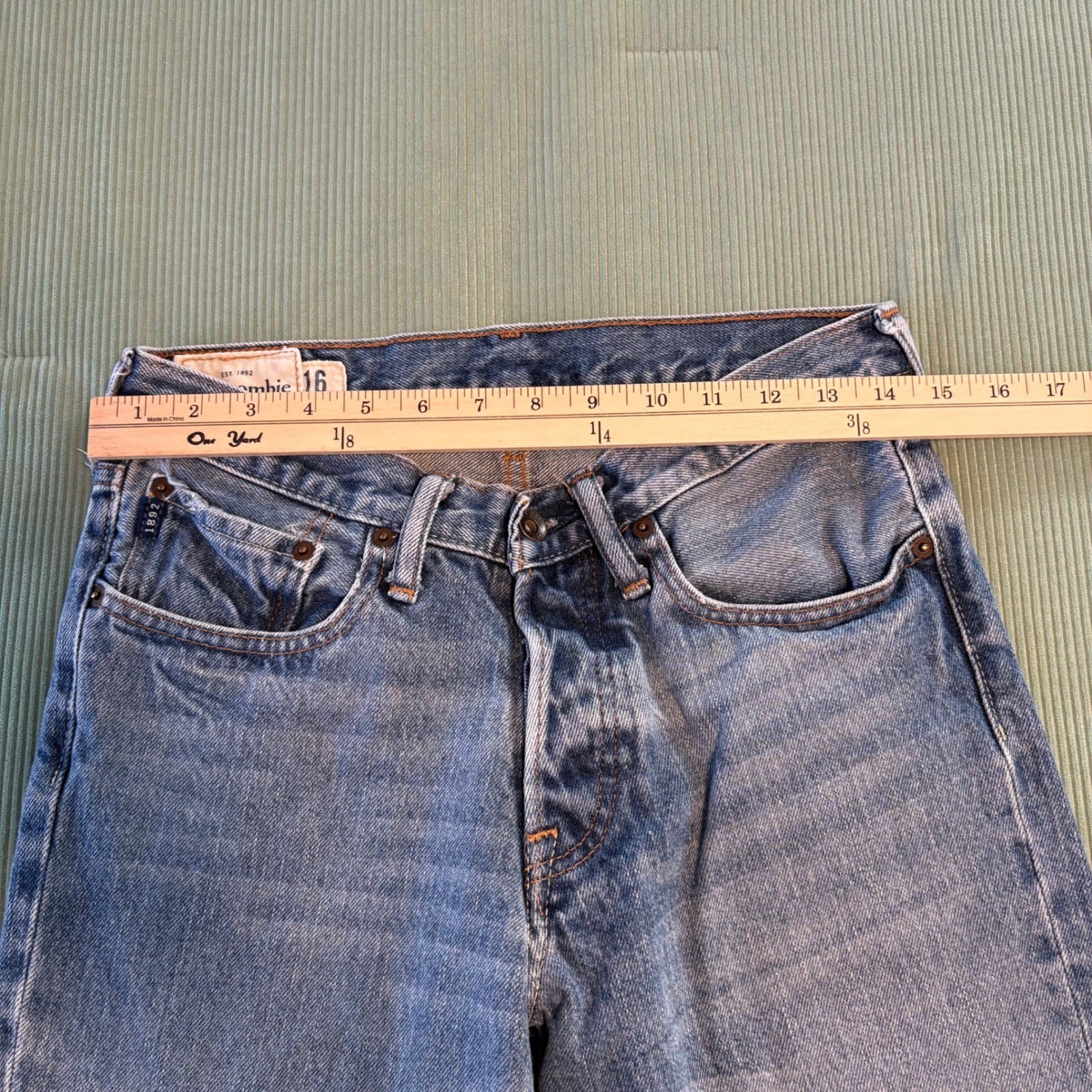 как выглядит Abercrombie Kids Jeans Size 16 Slim Button Fly Medium Wash Straight Leg Denim фото