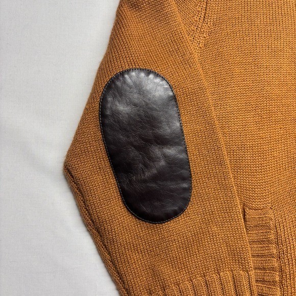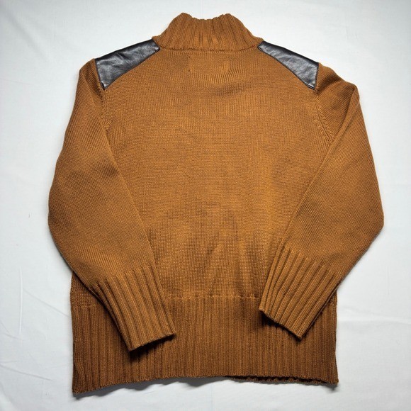 как выглядит Terry Lewis Classic Luxuries Brown Full Zip Sweater Leather Patches Mens L фото