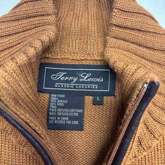 Terry Lewis Classic Luxuries Brown Full Zip Sweater Leather Patches Mens L