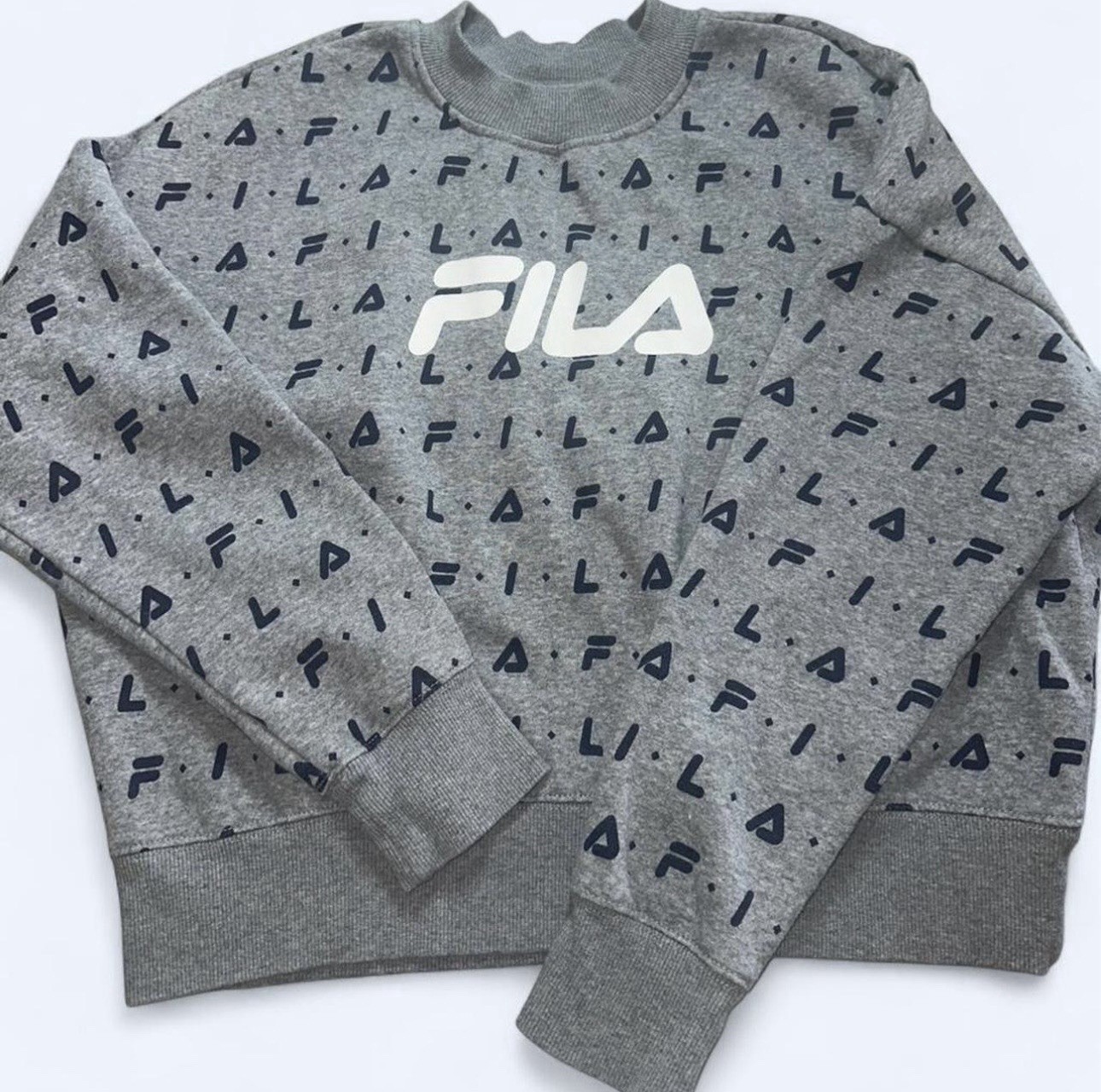FILA Women's Gray Logo Print Fleece Pullover Sweatshirt Crew Neck XL Fits S/M w