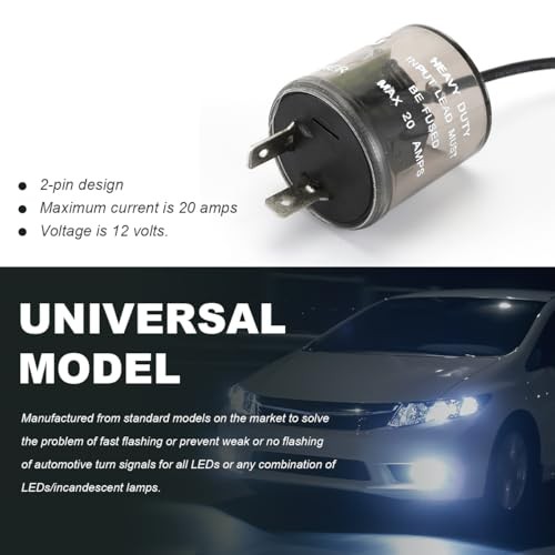 2 Pin 12V LED Flasher, Heavy Duty Car Electronic Flasher Blinker Relay with