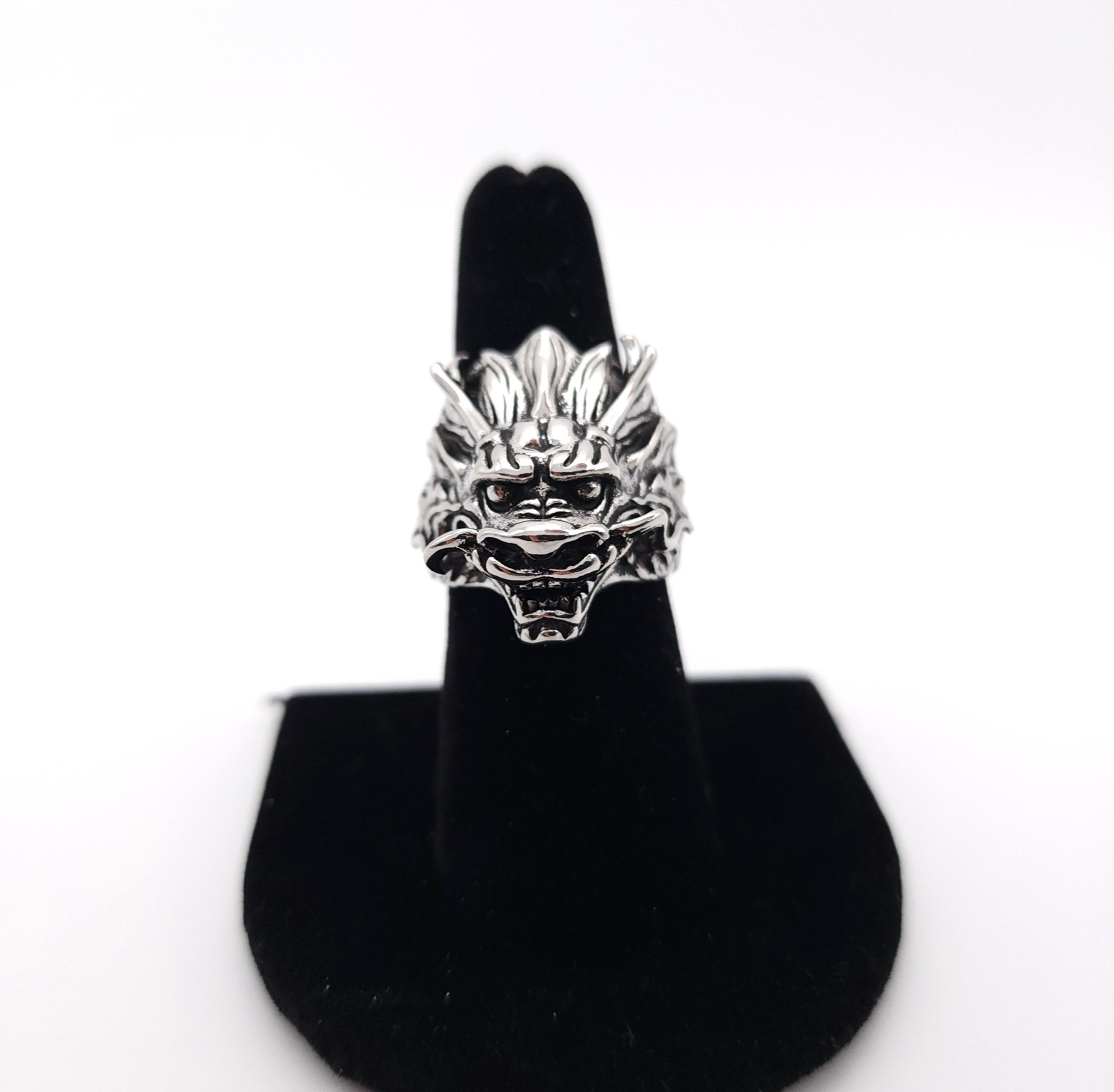 как выглядит Gothic Dragon Head Ring Silver Plated Adjustable Fantasy Unisex Jewelry фото