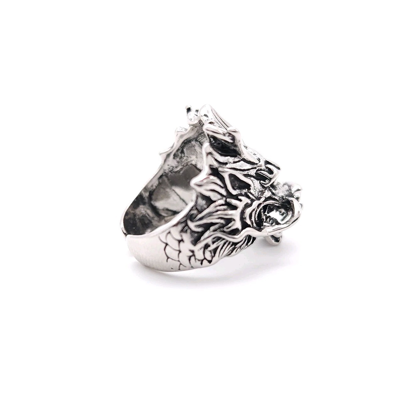 Gothic Dragon Head Ring Silver Plated Adjustable Fantasy Unisex Jewelry