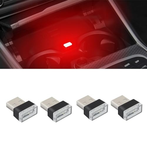 4PCS USB LED Car Interior Atmosphere Lamp, Plug-in USB Decor Night Light, Red