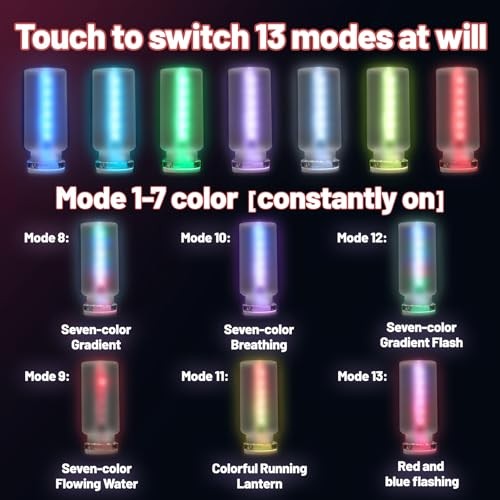 USB Car Light, Touch Control 13 Modes 7 Colors, Switch Memory Retention, 1Pcs