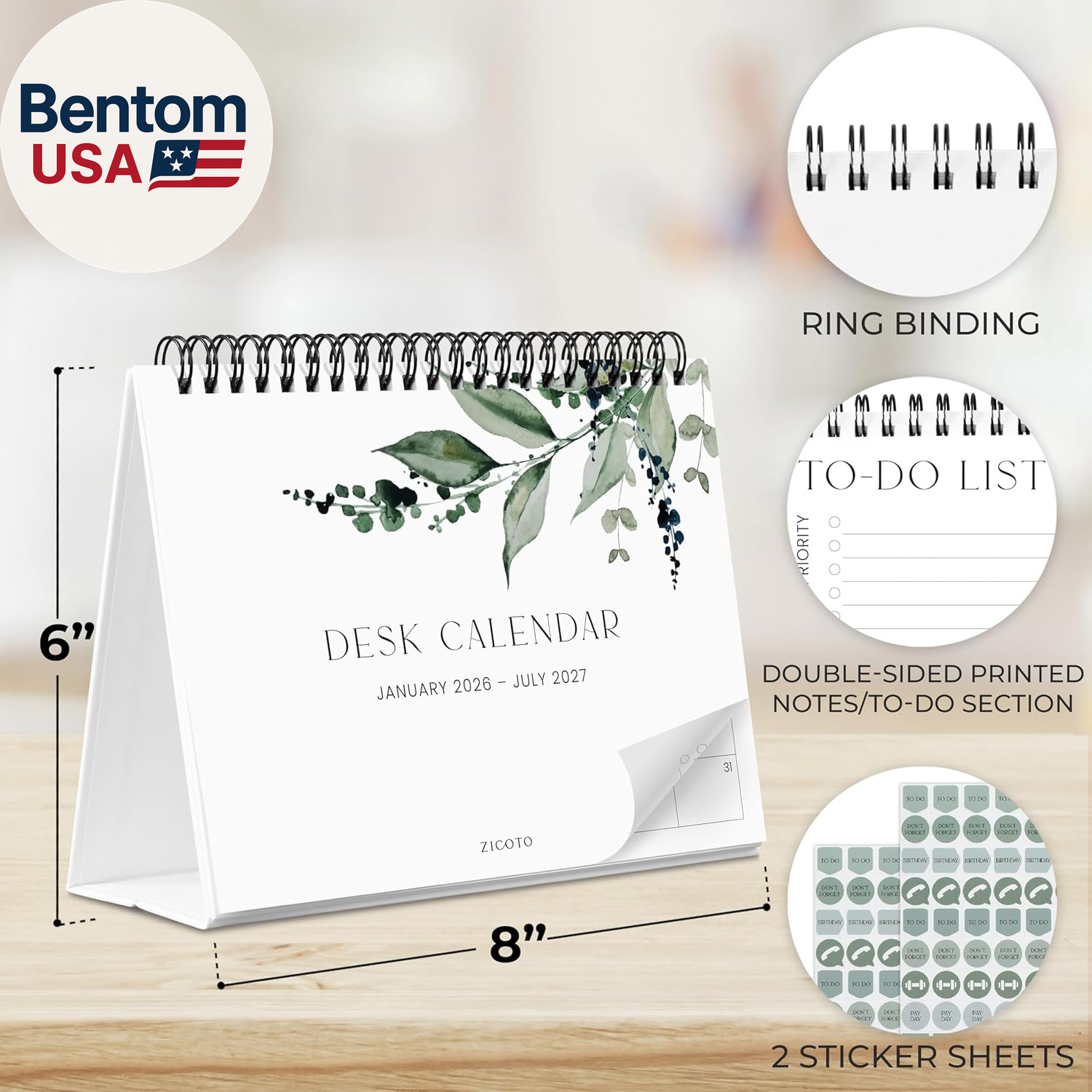 • Aesthetic Desk Calendar 2026-2027 - Runs from January 2026 until July 2027 - Bea