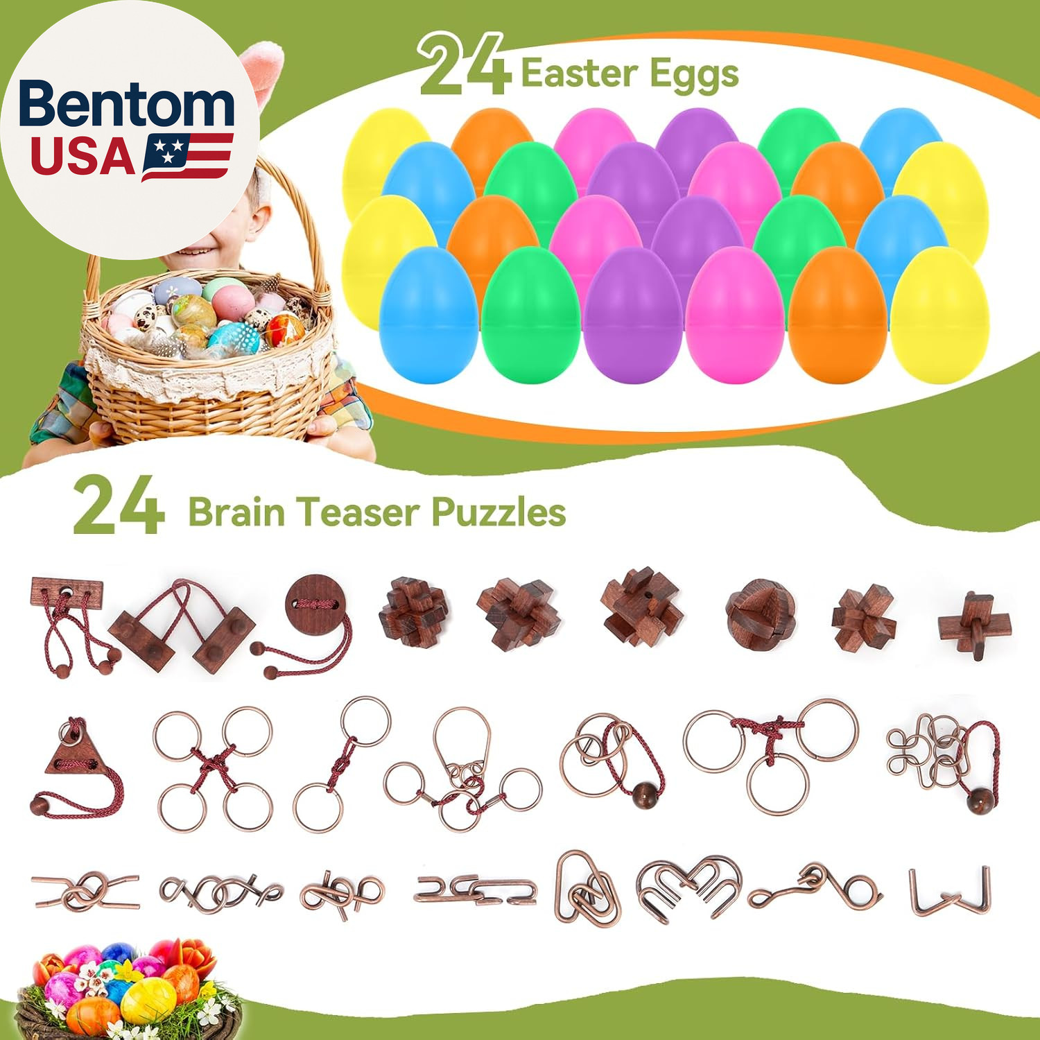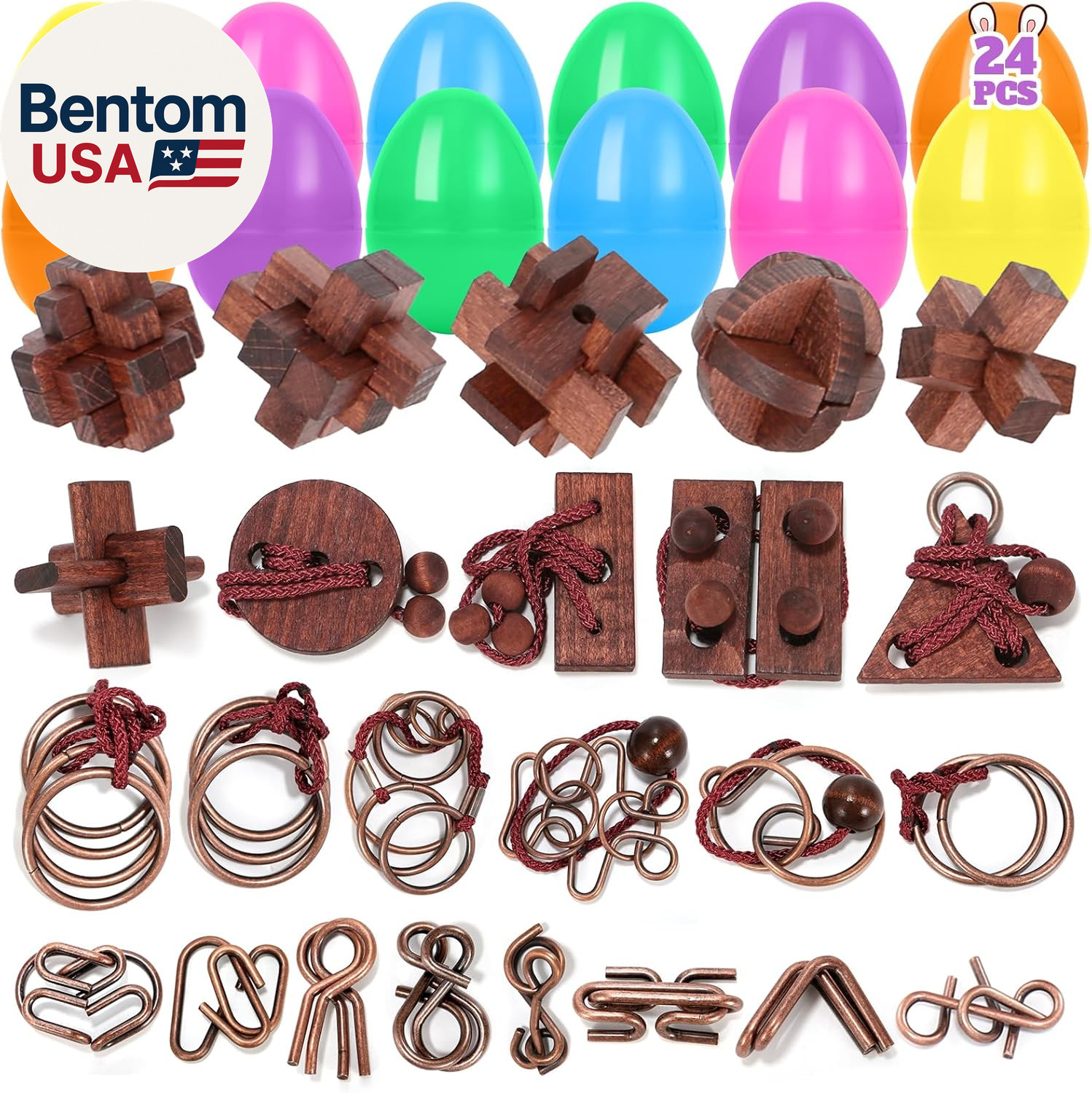 24 Pack Prefilled Easter Eggs with Brain Teaser Puzzles Toys, Easters Egg Filled