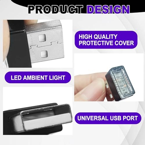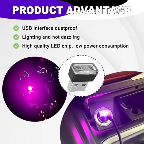 4 PCS USB LED Car Ambient Lighting Kit Plug in Atmosphere Lamps Portable purple