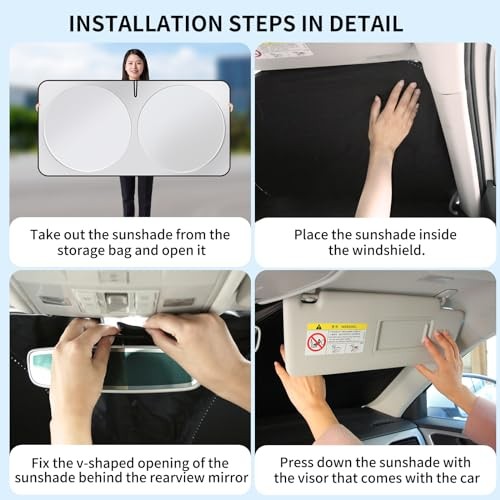 • Car Front Windshield Sun Shade, Vehicle Sun Protection Shield, 62.9 31.4 in
