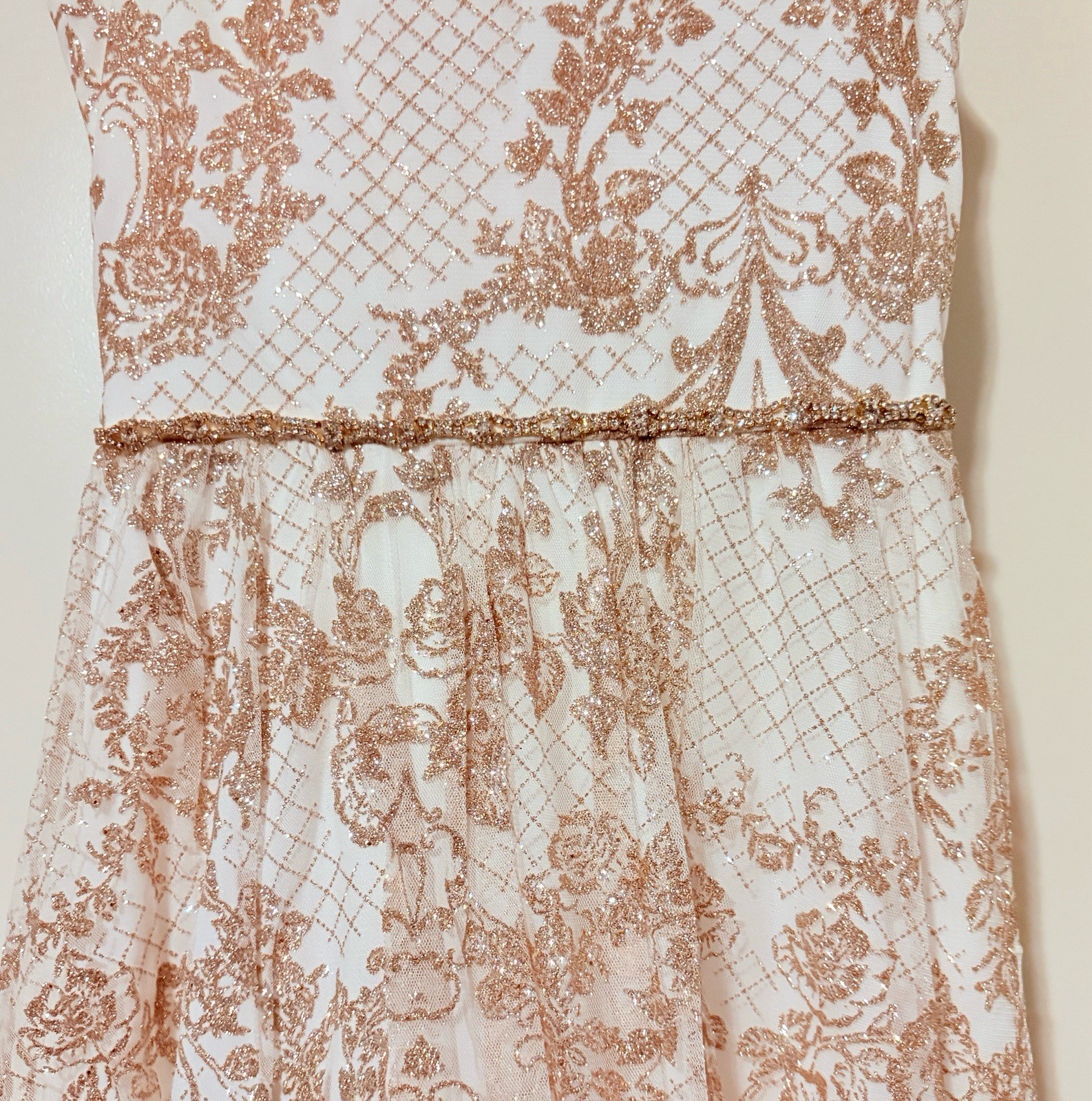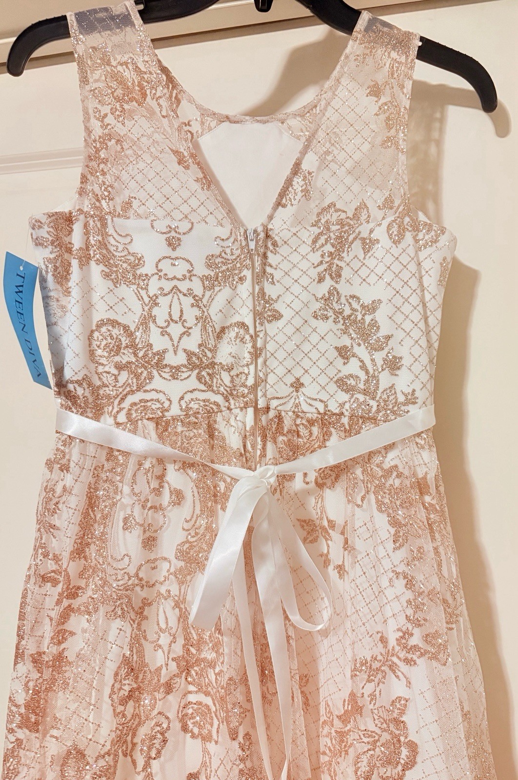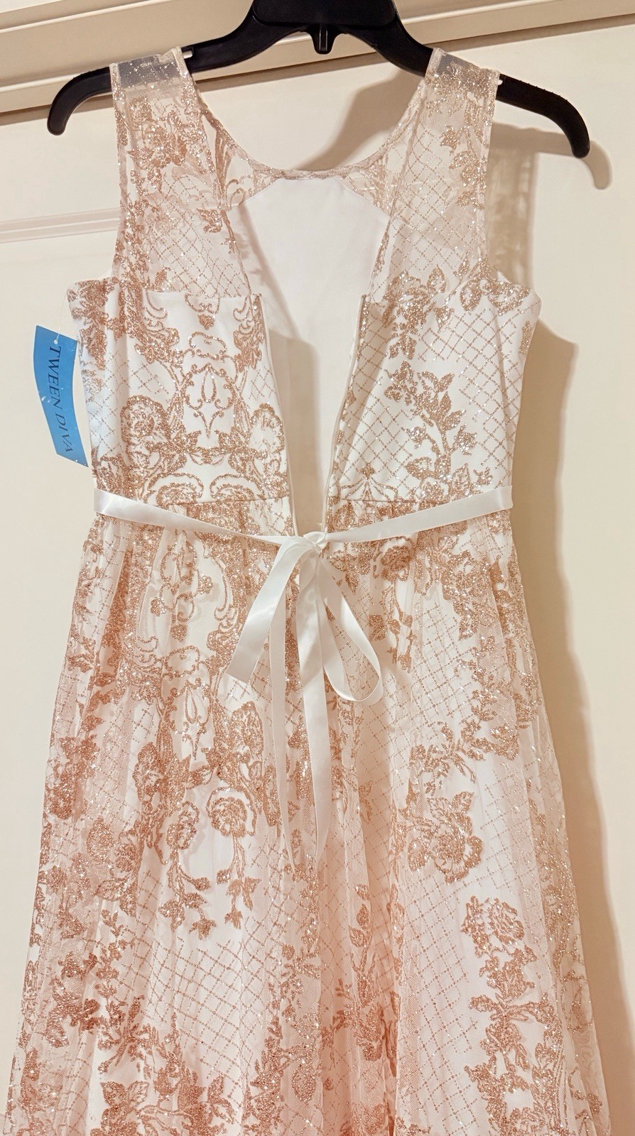 как выглядит Tween Diva Elegant Gold/Cream Lace Maxi Dress Teen Size 14 New With Tags фото