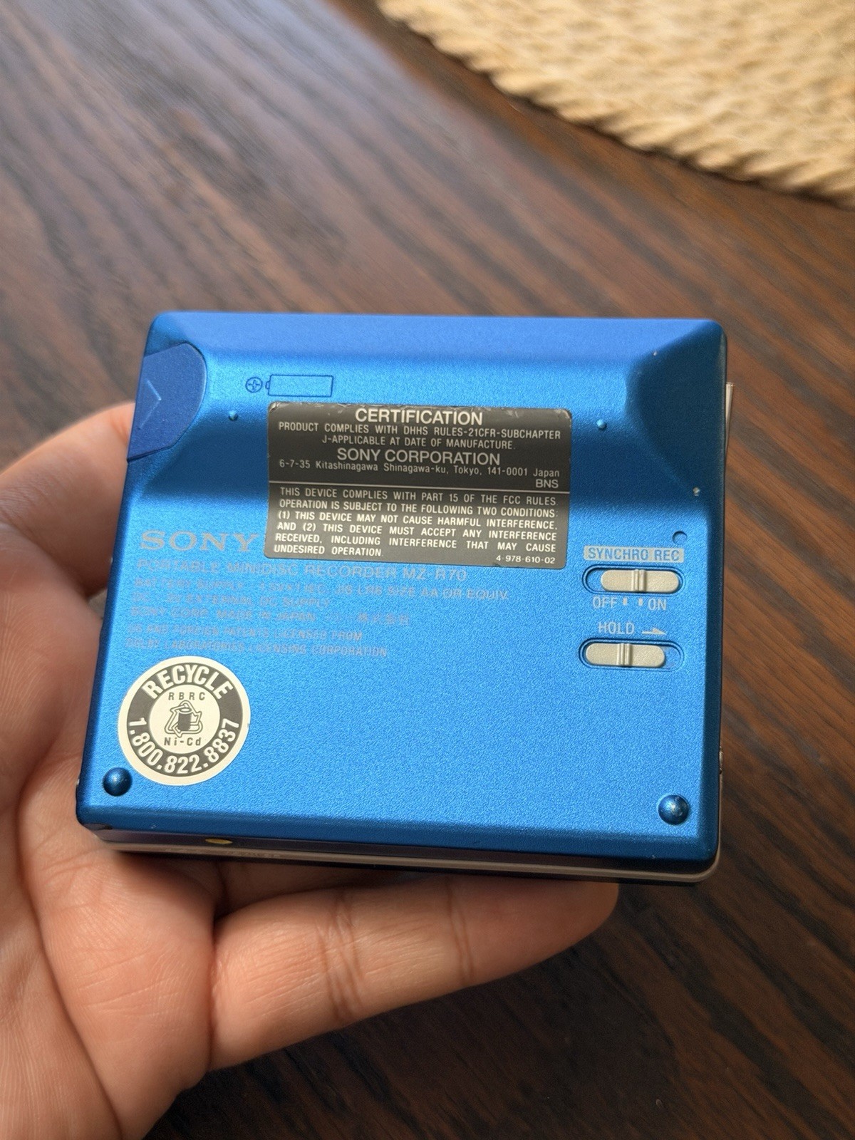 Sony MD Walkman MZ-R70 Portable MD Minidisc Player TESTED WORKS NEAR MINT BLUE