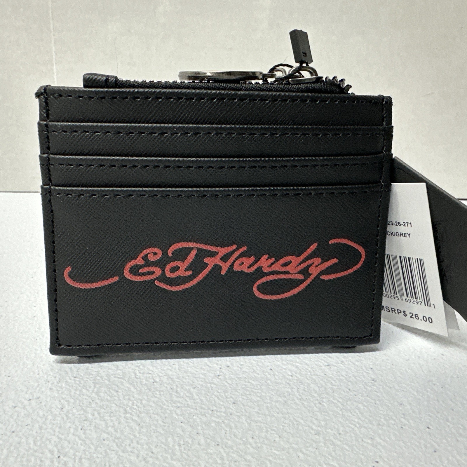 как выглядит NWT Ed Hardy Bifold Snap Card Case Womens Wallet - Black - Skull Roses Hearts фото