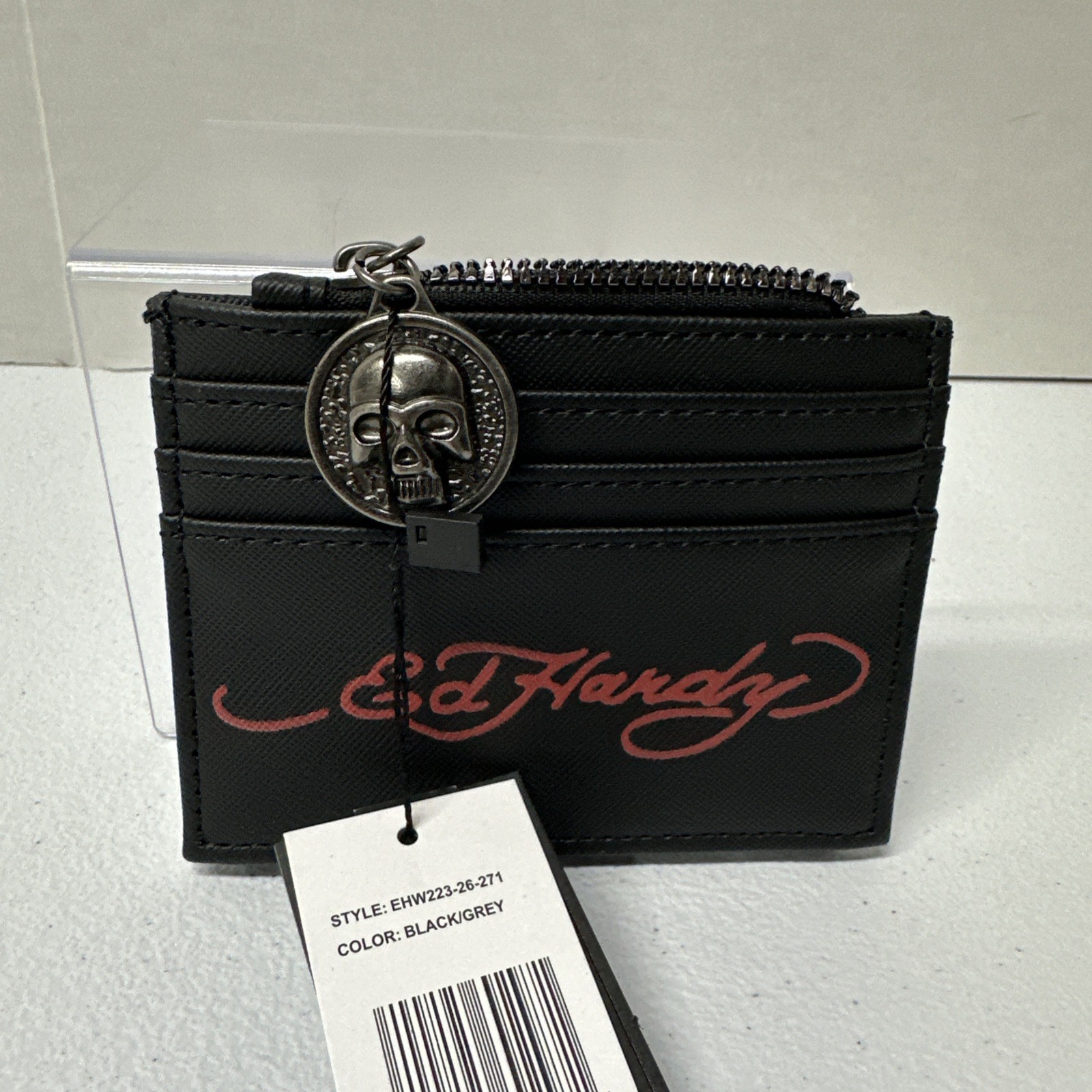 NWT Ed Hardy Bifold Snap Card Case Womens Wallet - Black - Skull Roses Hearts