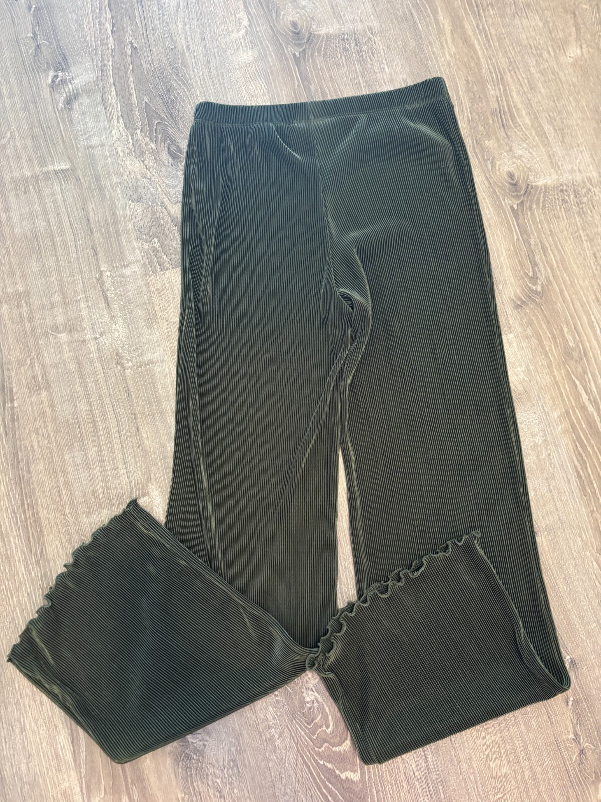 No Boundaries Women's Ribbed Flare Straight Leg Pants Lettuce-Edge Hem Sz 4 6