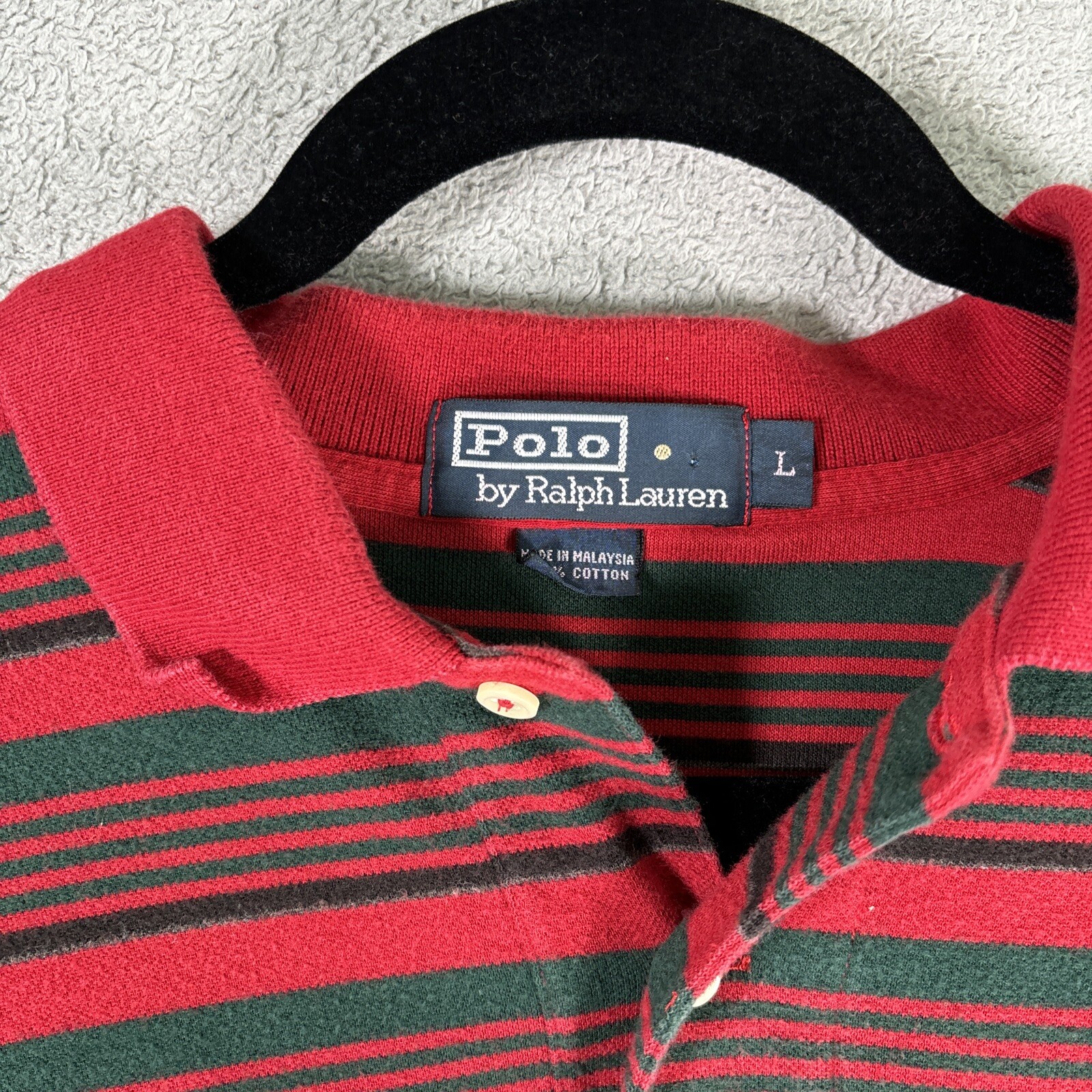 Vintage Polo By Ralph Lauren Size L Polo Red Striped Short Sleeve Christmas