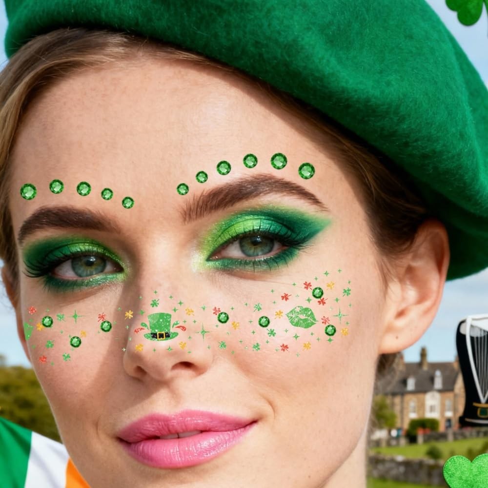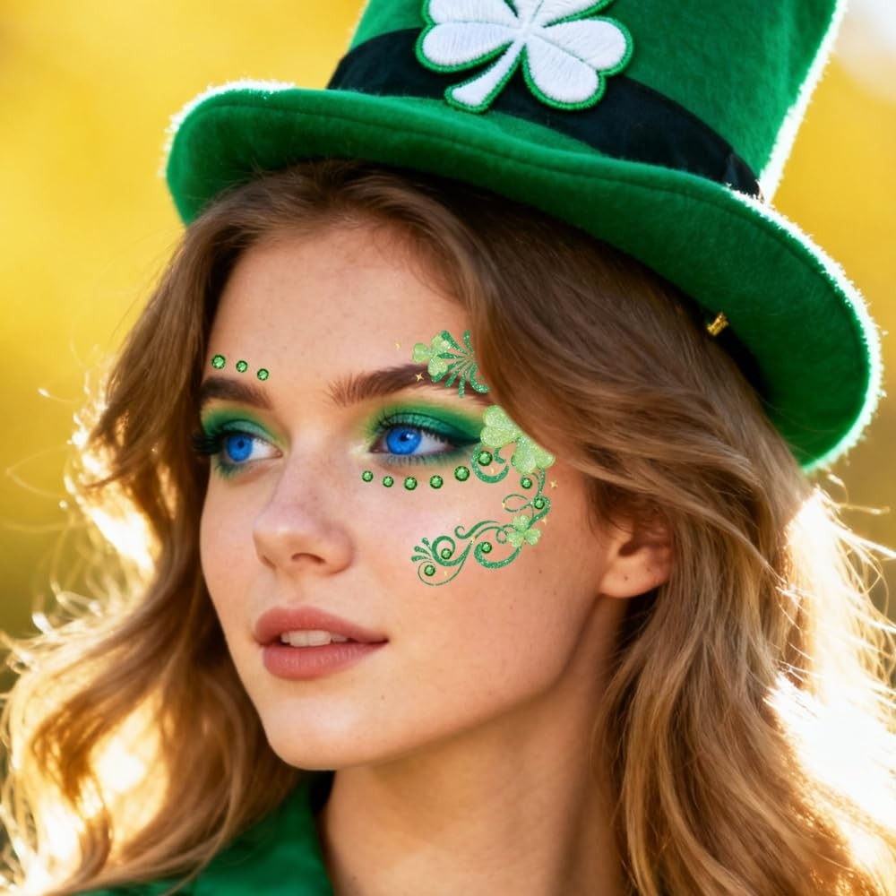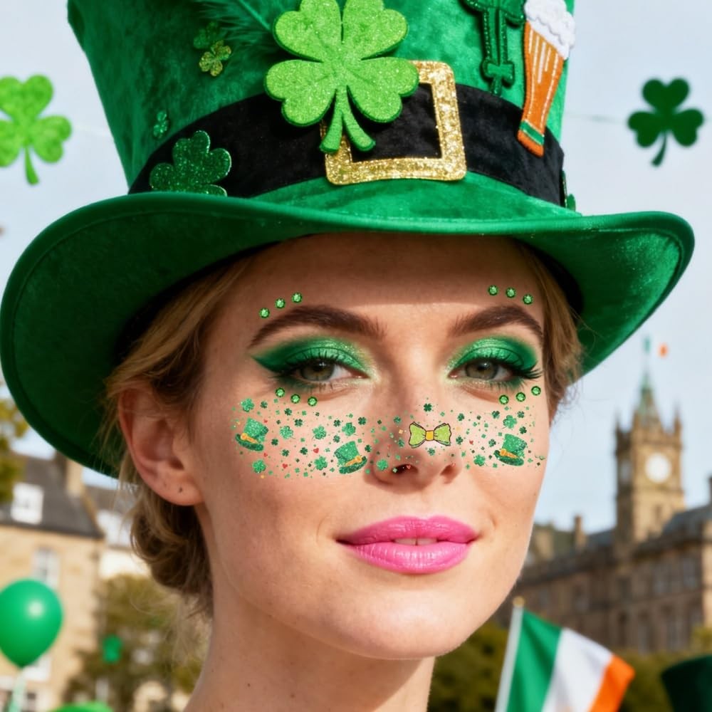 St Patricks Day Temporary Tattoos Green Leaf Blush Face Tattoos Lucky Clover Sha