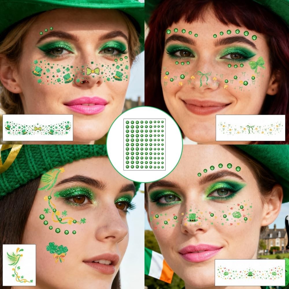 как выглядит St Patricks Day Temporary Tattoos Green Leaf Blush Face Tattoos Lucky Clover Sha фото
