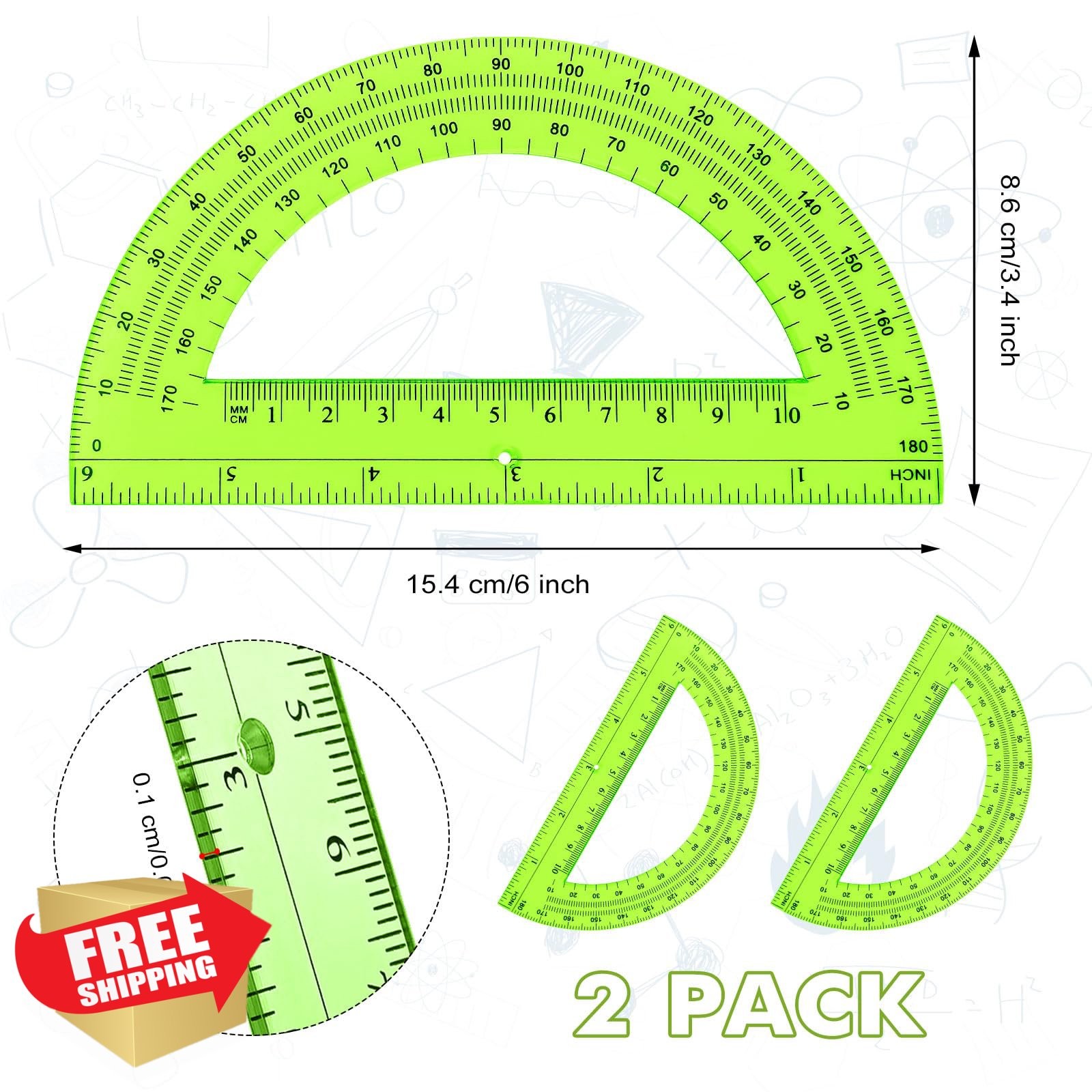 Zonon 2 Pcs 6 Inch Plastic Protractor Green Angle Measurement Math