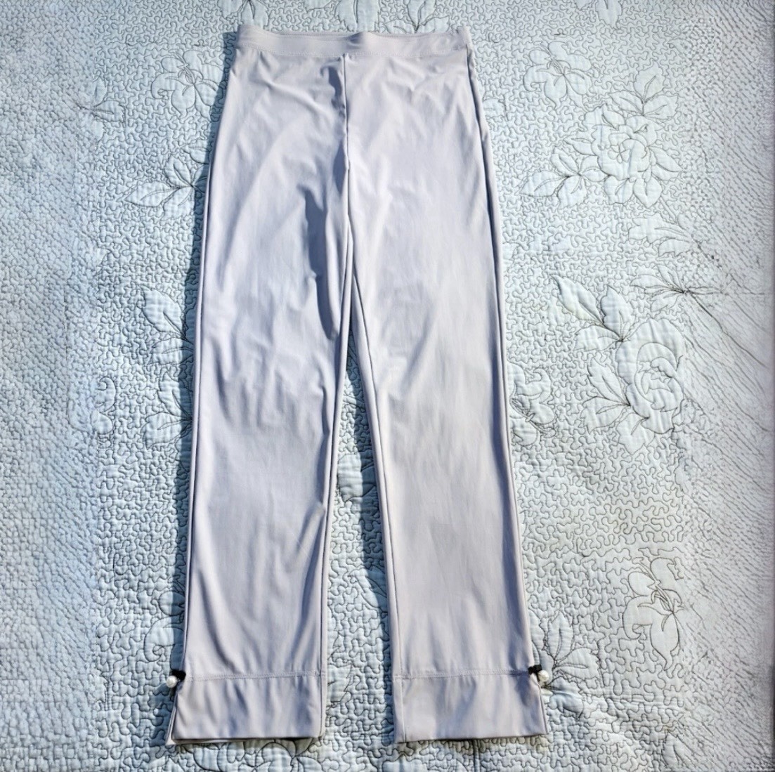 NWT IC by Connie K Pearl Bow Detail Pull On Ankle Pants Light Gray Sz S