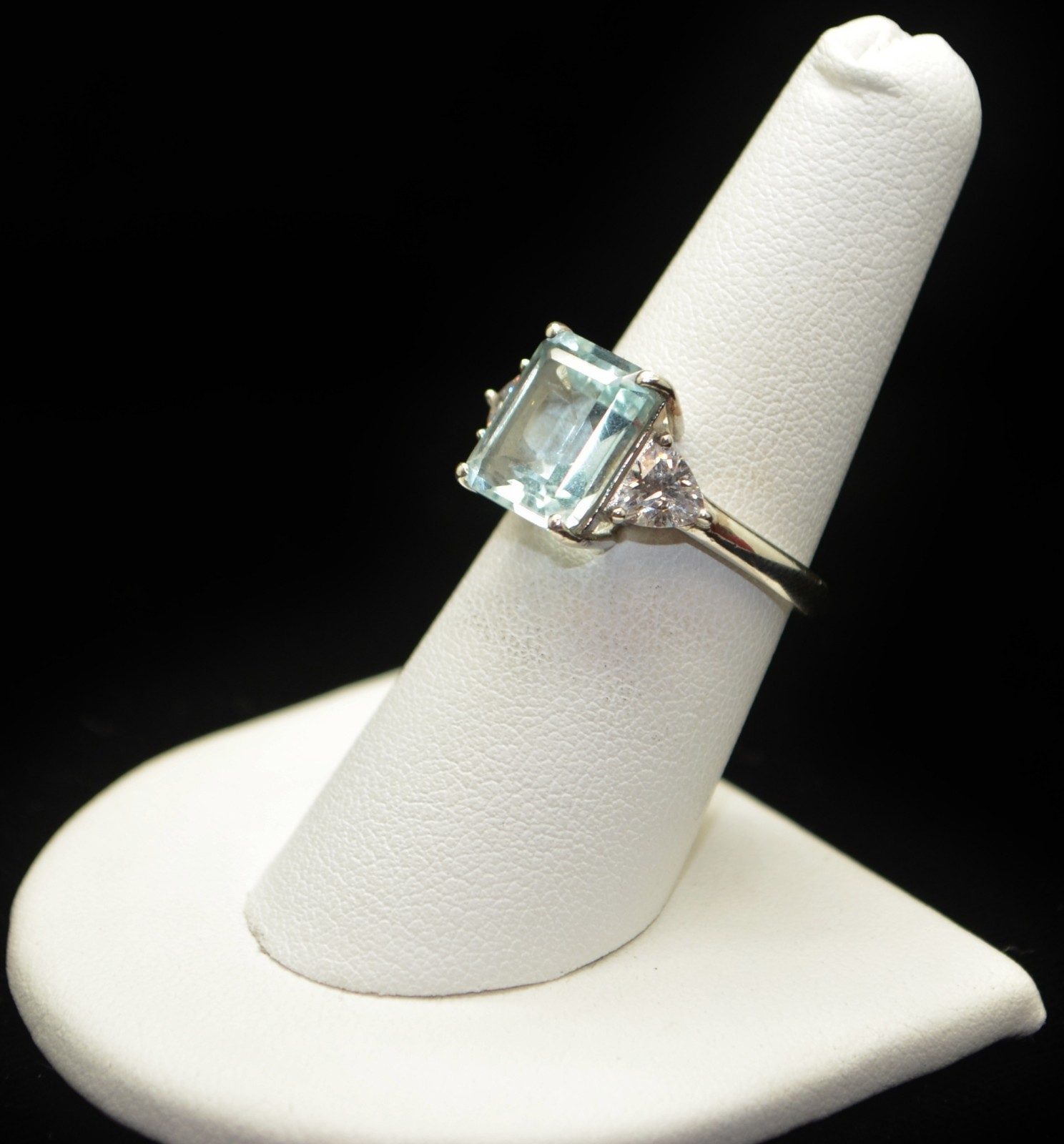 Sterling Silver Clear Light Blue Square Gem Ring SZ 7.0 FMF343