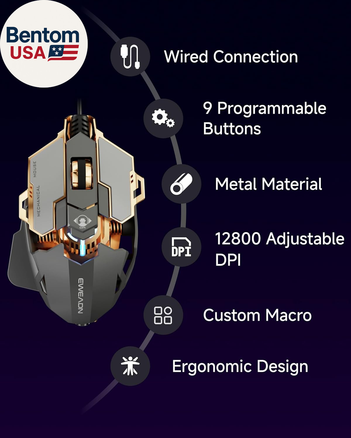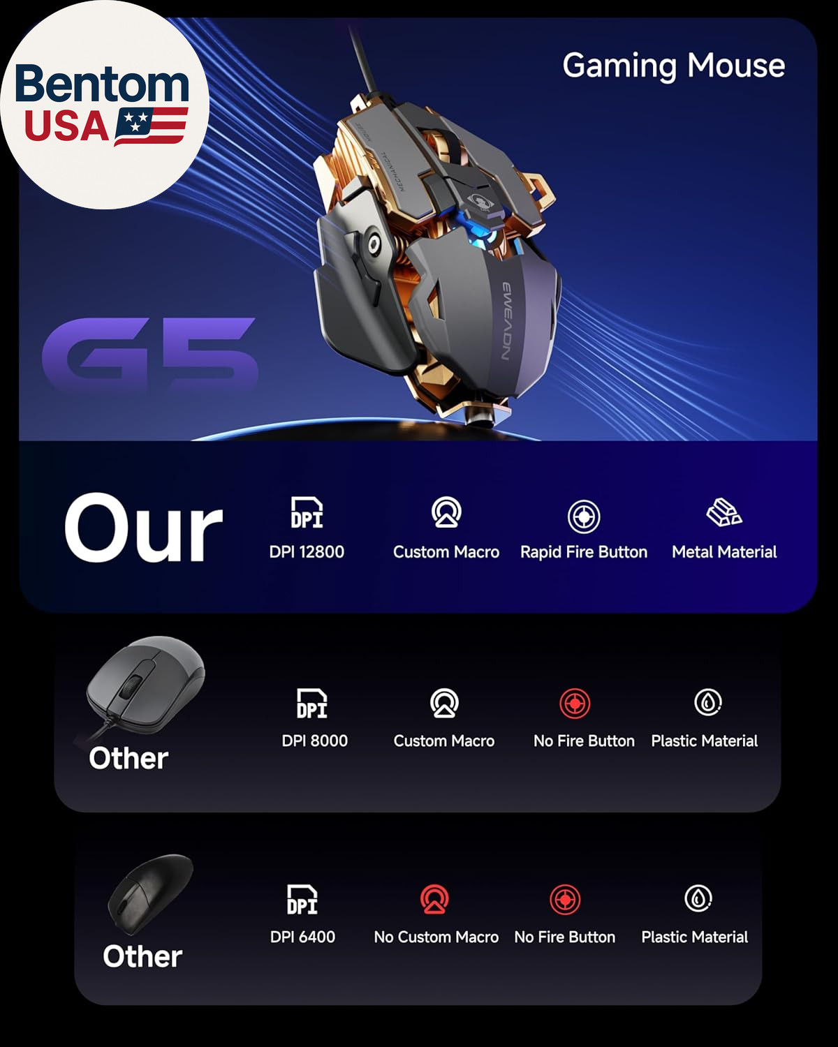 G5 Wired Gaming Mouse, Ergonomic RGB Computer Mouse, 12800 Adjustable DPI, 9 Pro