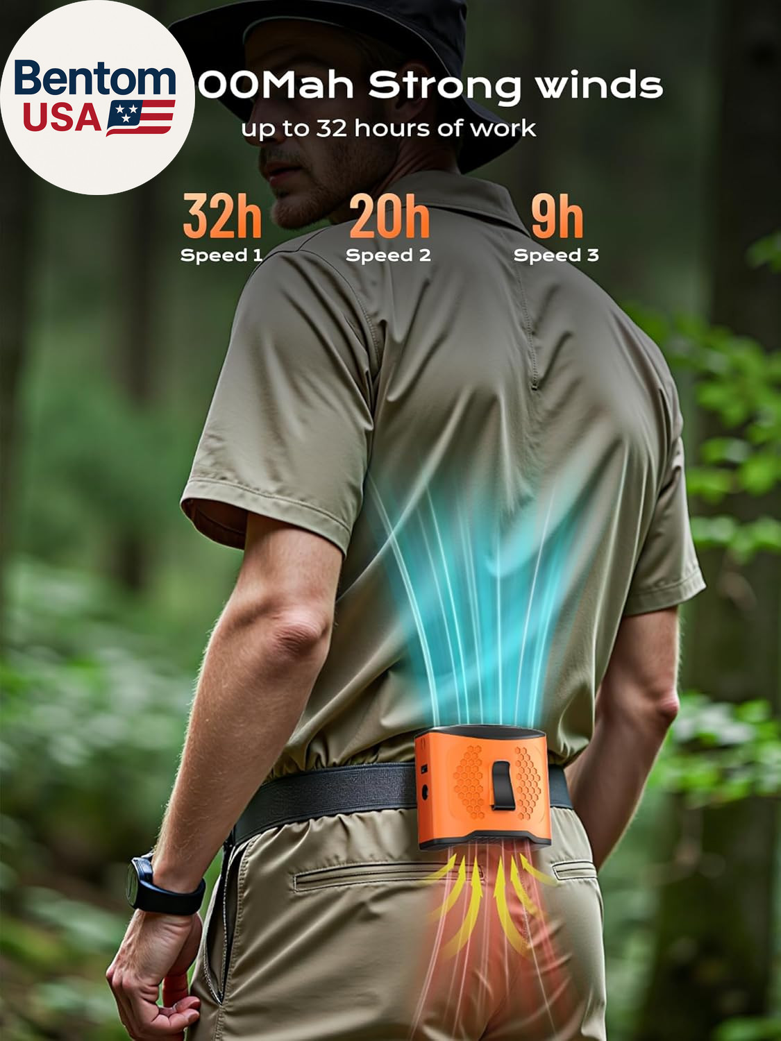 Portable Waist Fan Clip On, 4 Speeds 13000RPM Strong Airflow with 10000Mah Batte