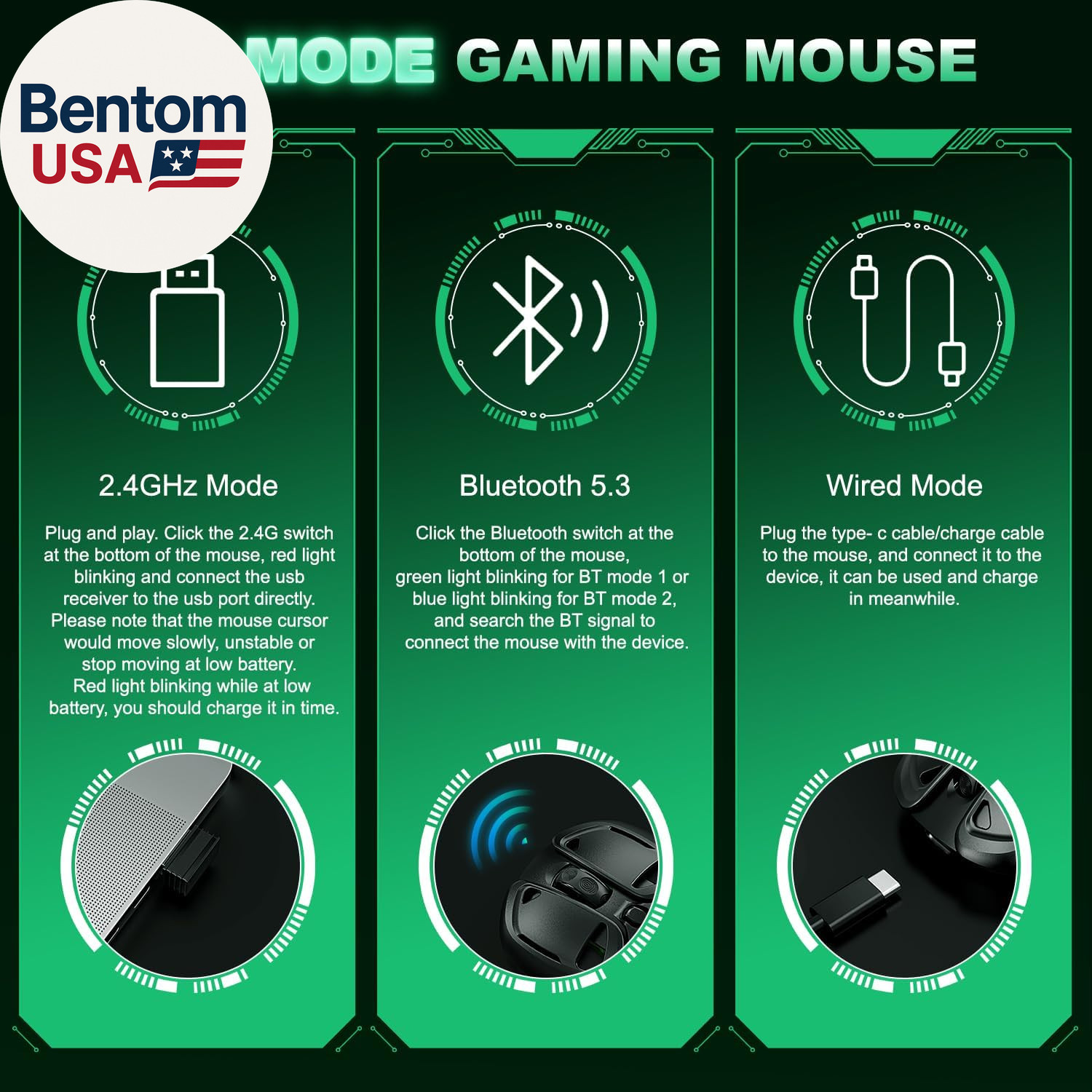Wireless Gaming Mouse, Tri-Mode 2.4G/Usb-C/Bluetooth 5.3 RGB Wireless Mouse, 100