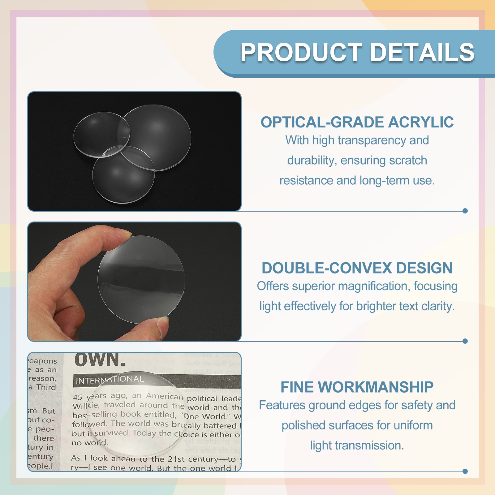 как выглядит 24 Pack Biconvex Lens, 50mm Dia. 180mm Focal Length Spherical Optical Lenses фото