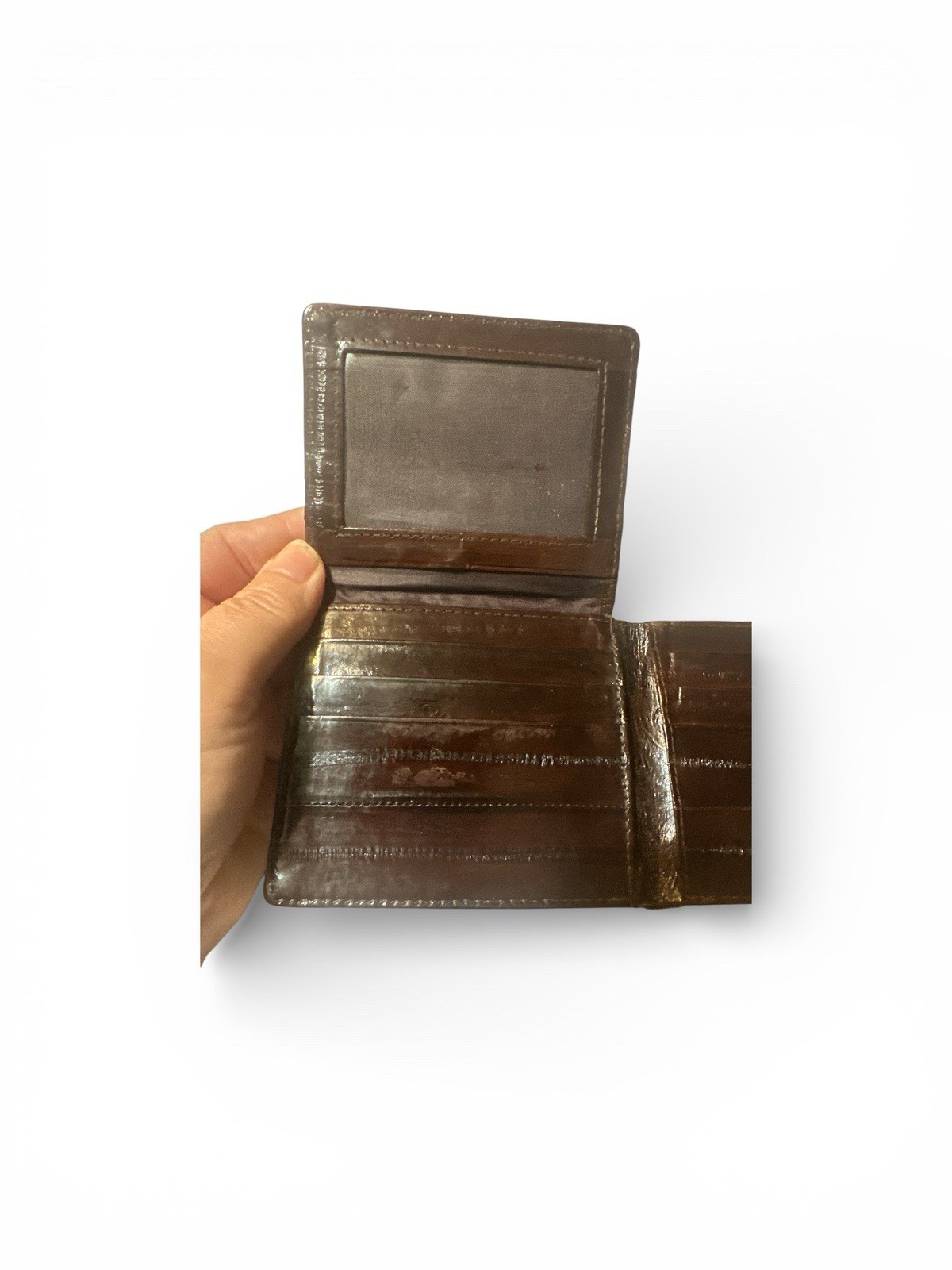 как выглядит Genuine Eel Skin Vintage Men s Brown Bi Fold Wallet Luxury Exotic Card Holder фото