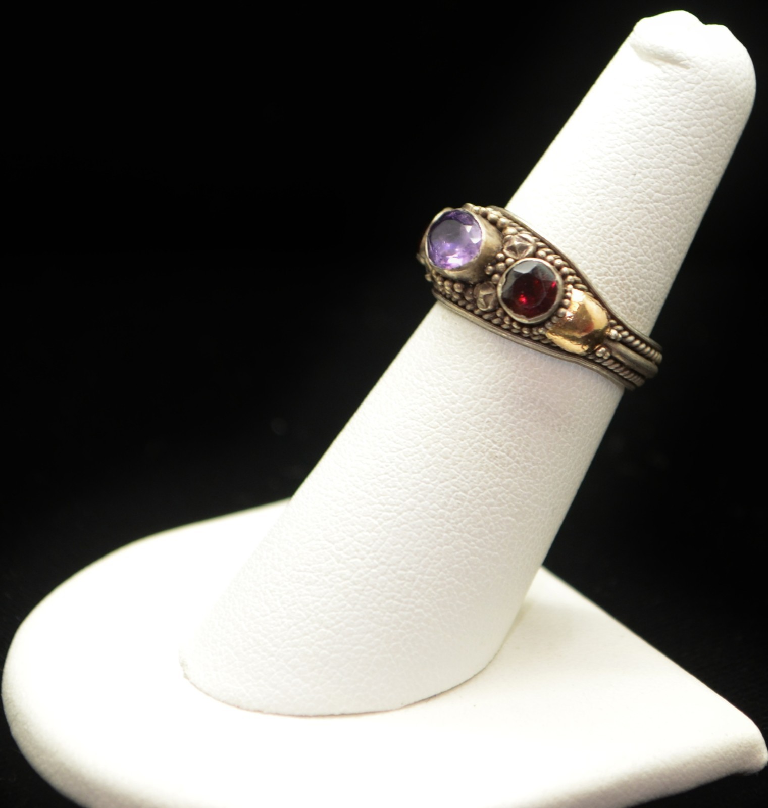 как выглядит Sterling Silver Two Dark Stones and Purple Gem Ring SZ 5.75 FMF355 фото