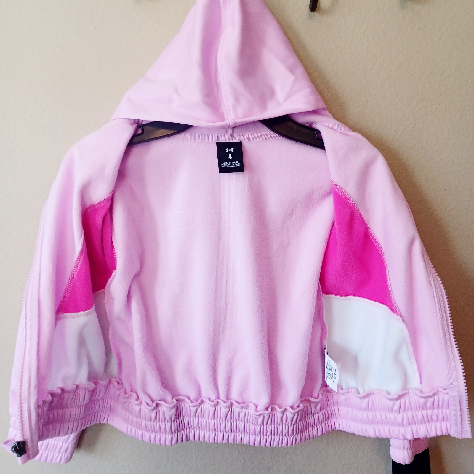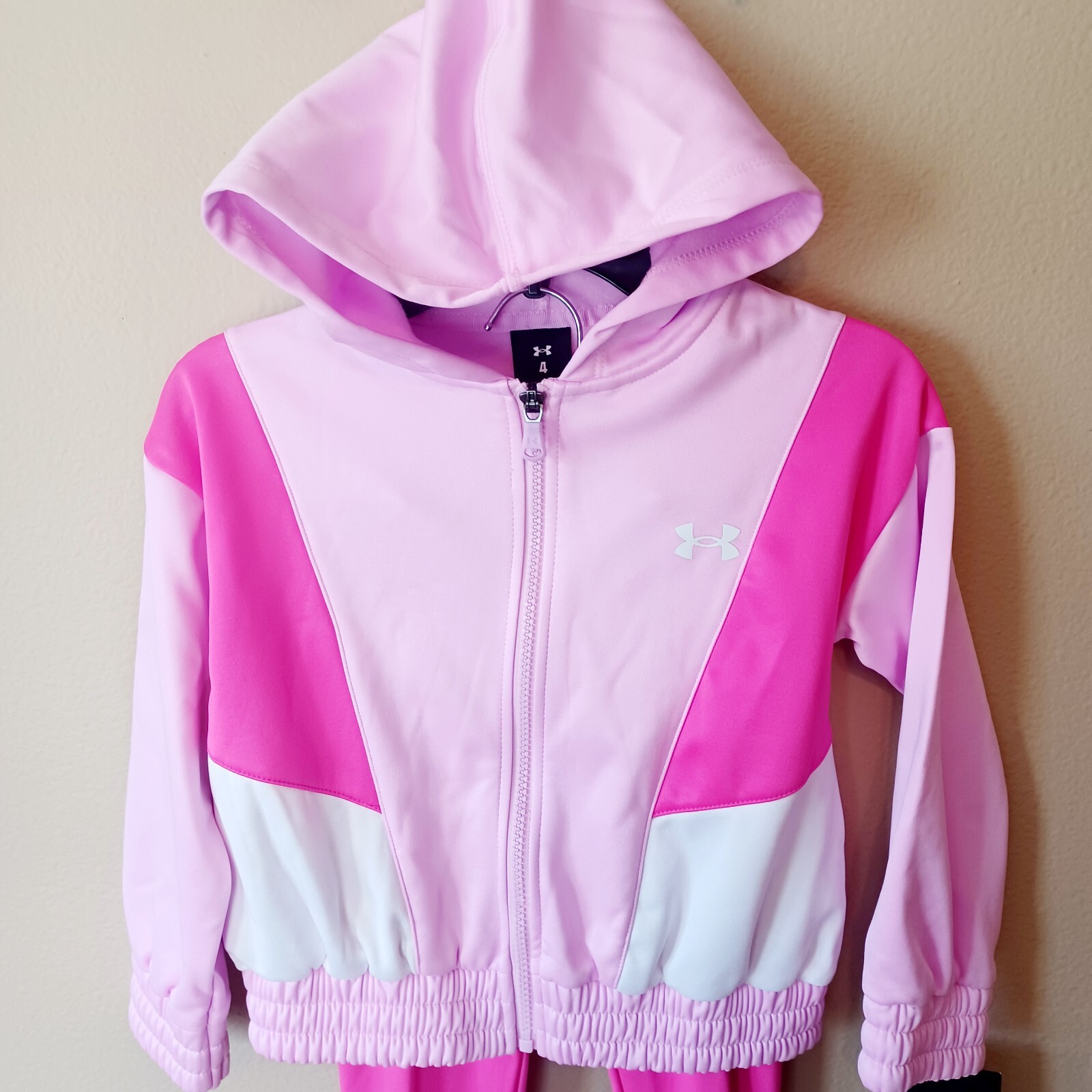 Under Armour Girls Pink Color Block Solid Tech Fleece Zip Hoodie Leggings Set-4