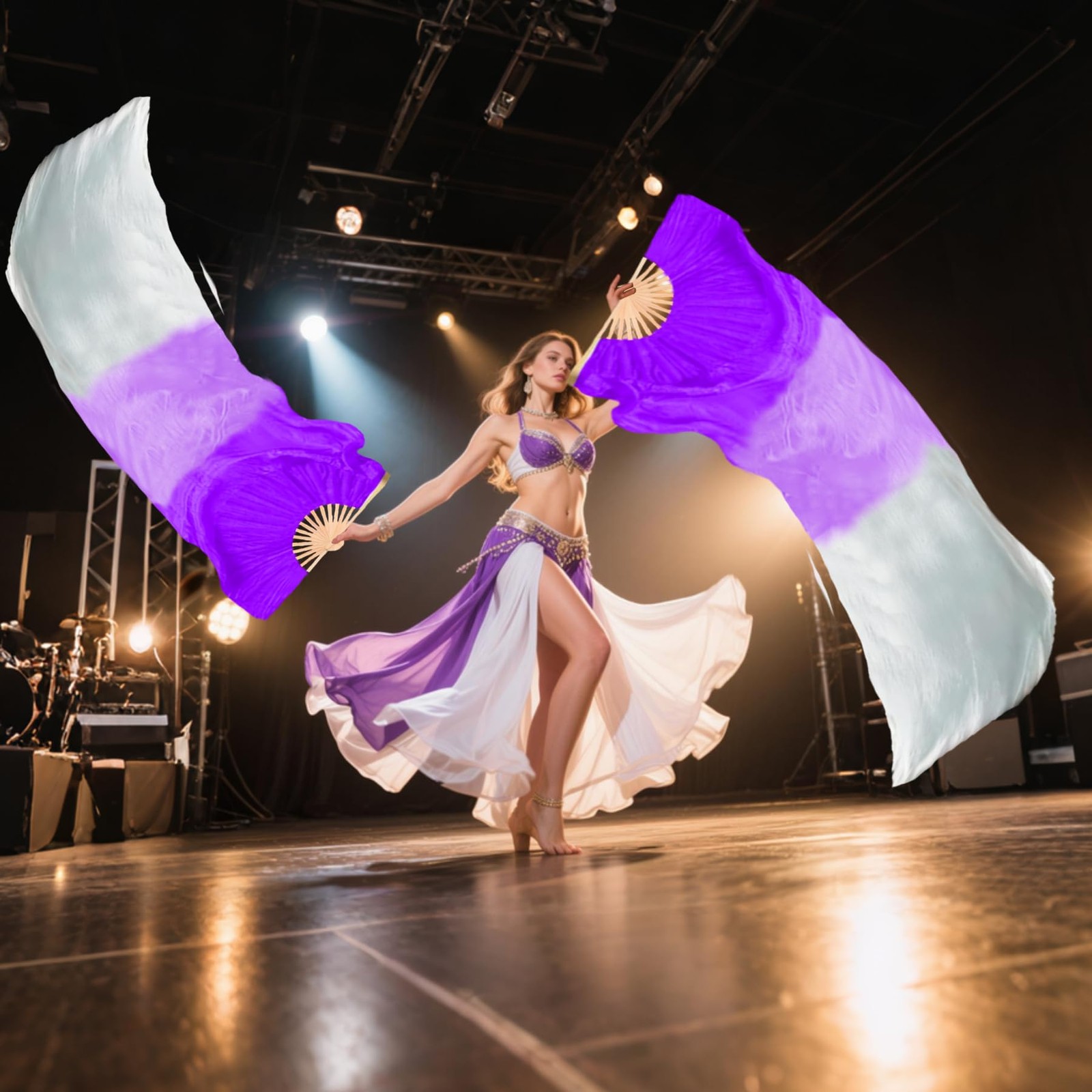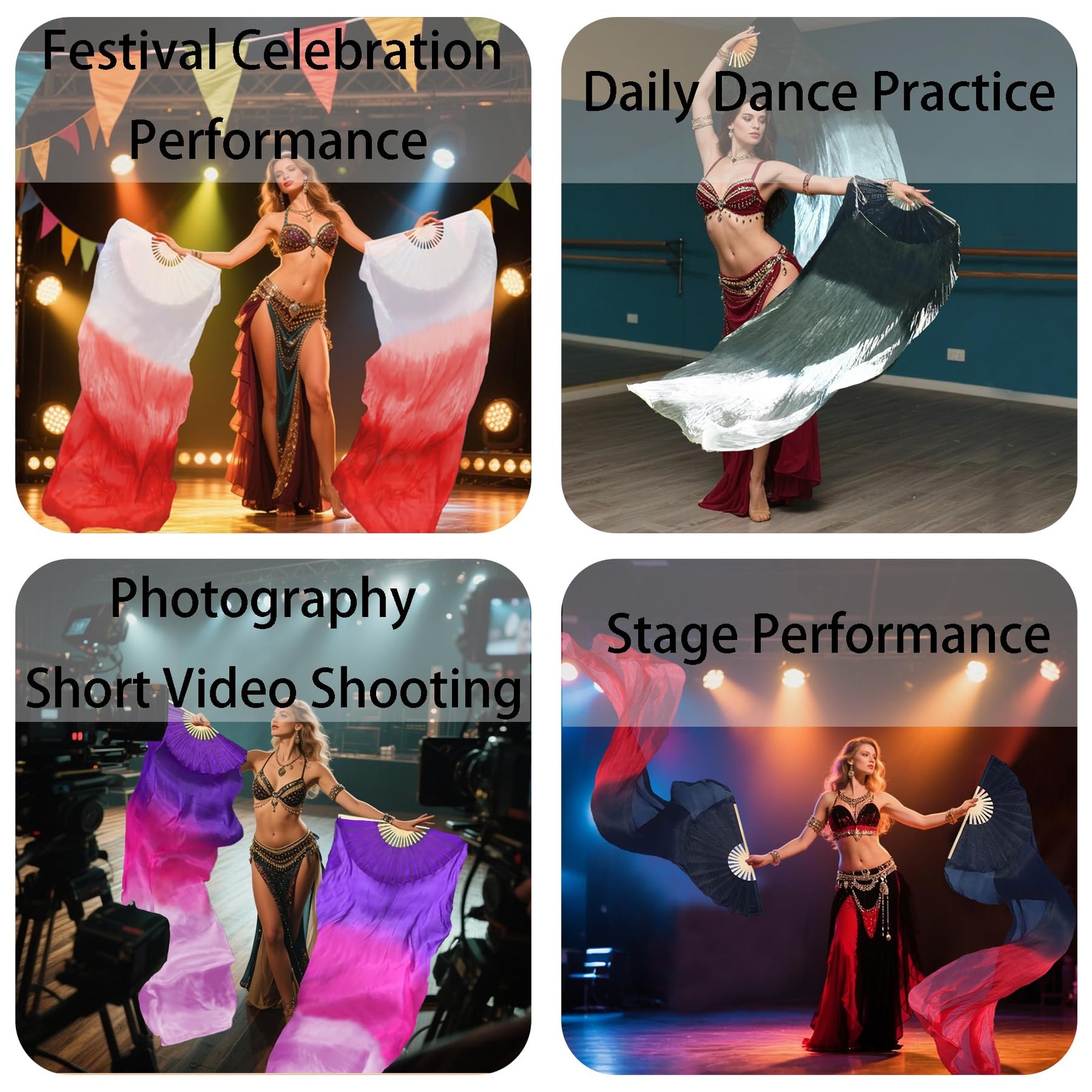Professional Belly Dance Fans Veils Pair Left Right ,180x90cm Faux Silk Fan ...