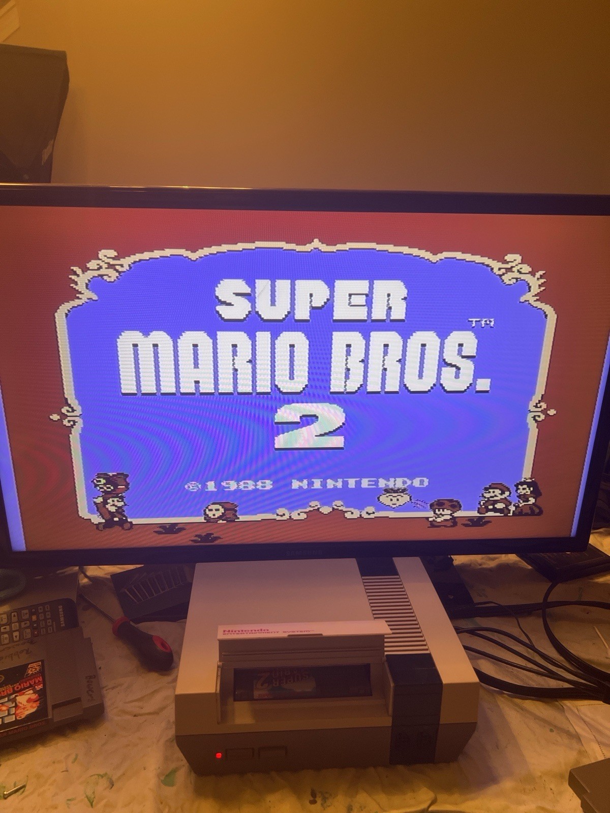 как выглядит Nintendo NES-001 Console Bundle 2 Controllers Zapper Super Mario Bros 2 Tested фото