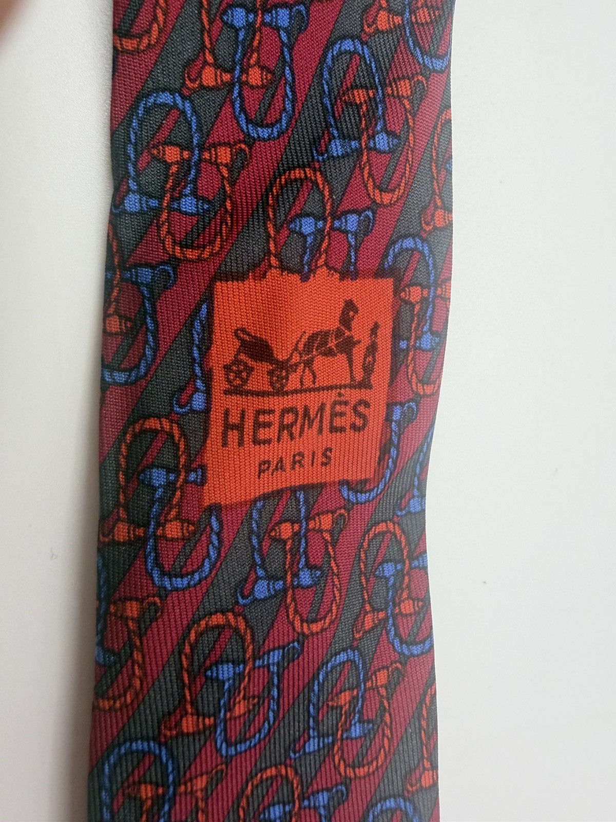 как выглядит HERMES Necktie Tie Red all over pattern 100 Silk made in France J13276 фото
