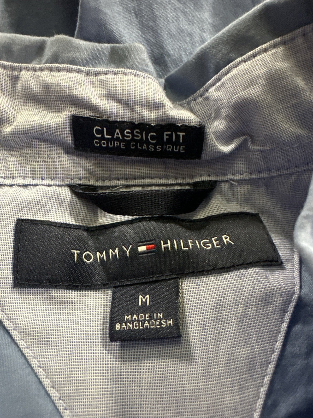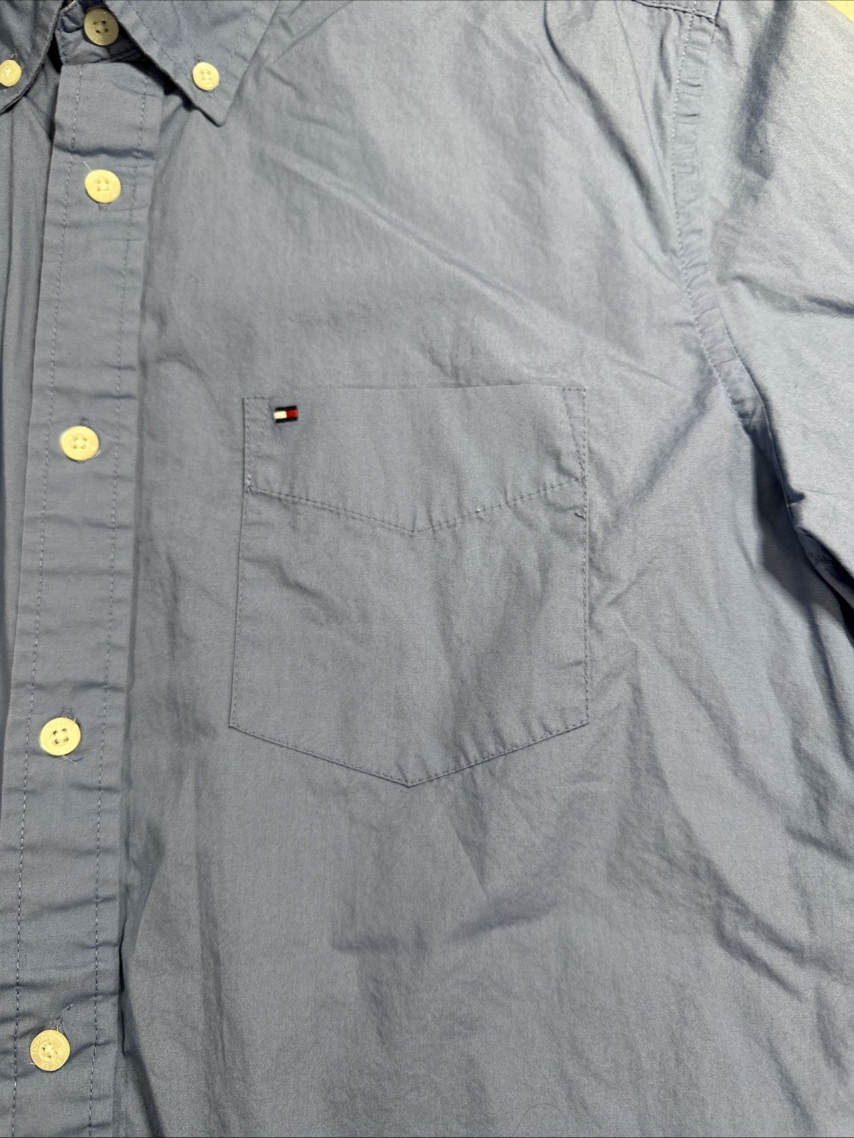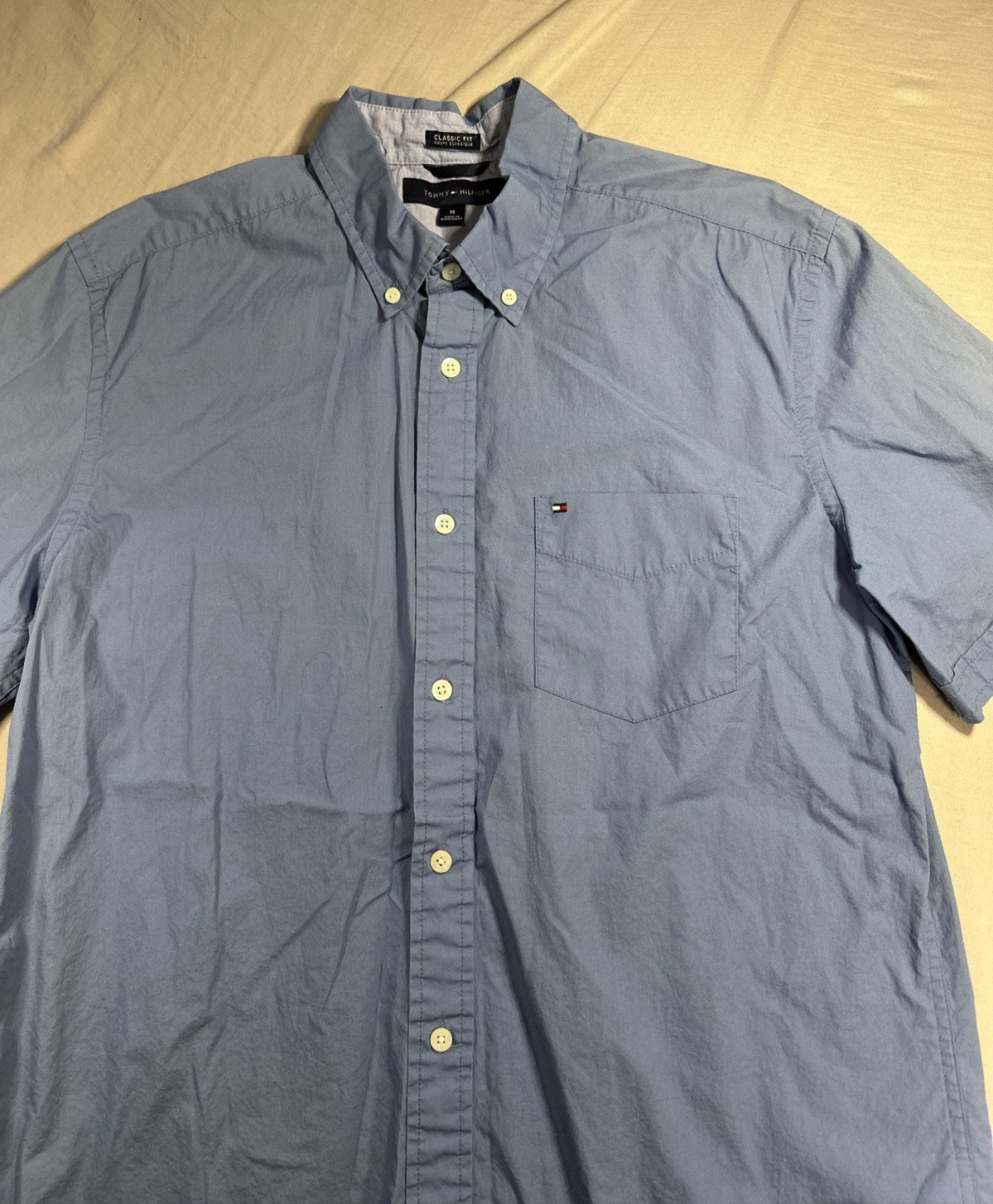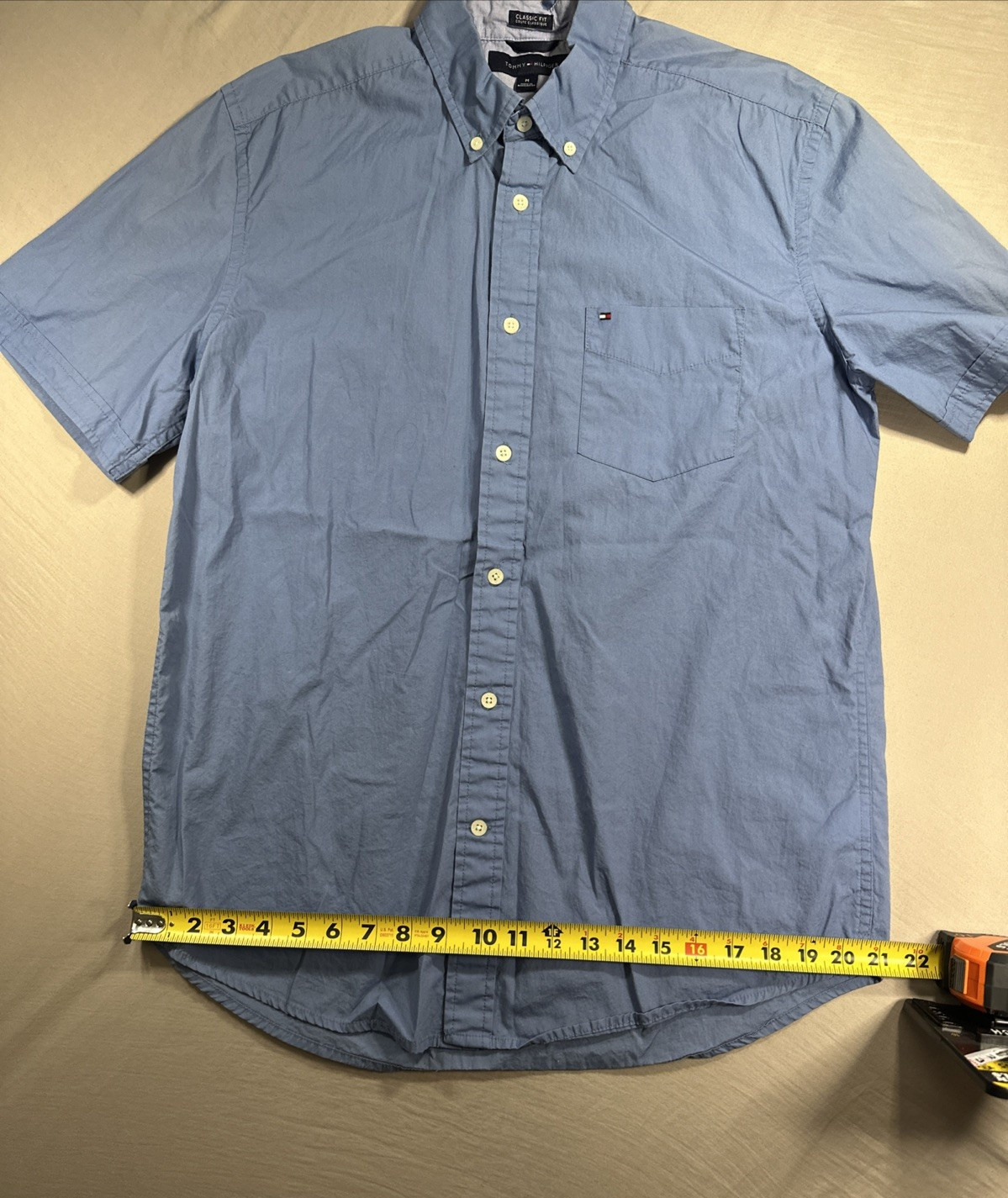 Tommy Hilfiger Mens M Blue Short Sleeve Button Down Classic Fit Shirt 100 Cotton
