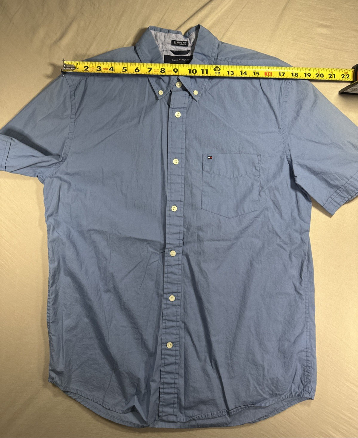как выглядит Tommy Hilfiger Mens M Blue Short Sleeve Button Down Classic Fit Shirt 100 Cotton фото