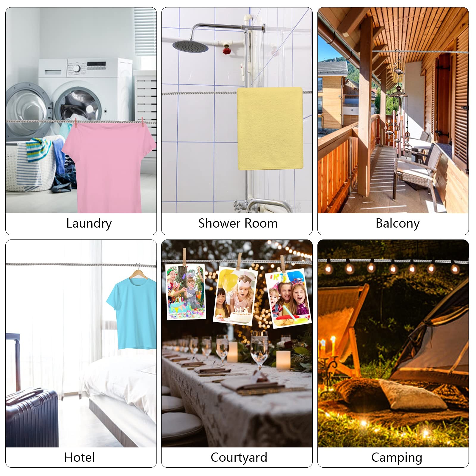 Clotheslines,Portable Windproof Clothes Rope Line with Stainless Steel Cable ...